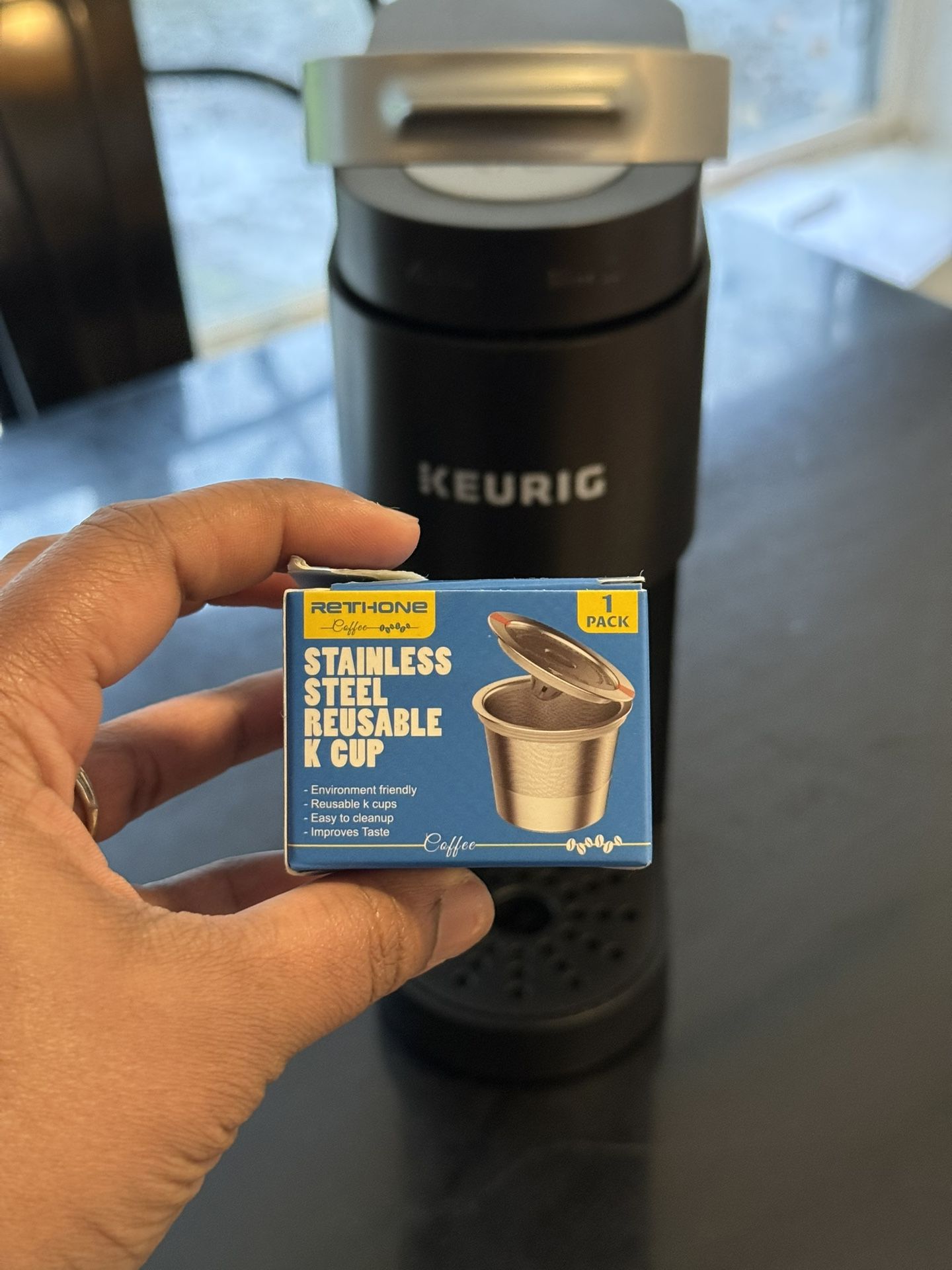 Single-serve, black Keurig in great condition with a stainless steel reusable K-Cup (used only once, it’s great!) Downsizing and no longer need.