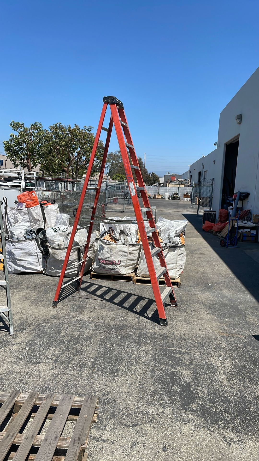 Orange fiberglass ladder used. Only cosmetic scratches and scuffs