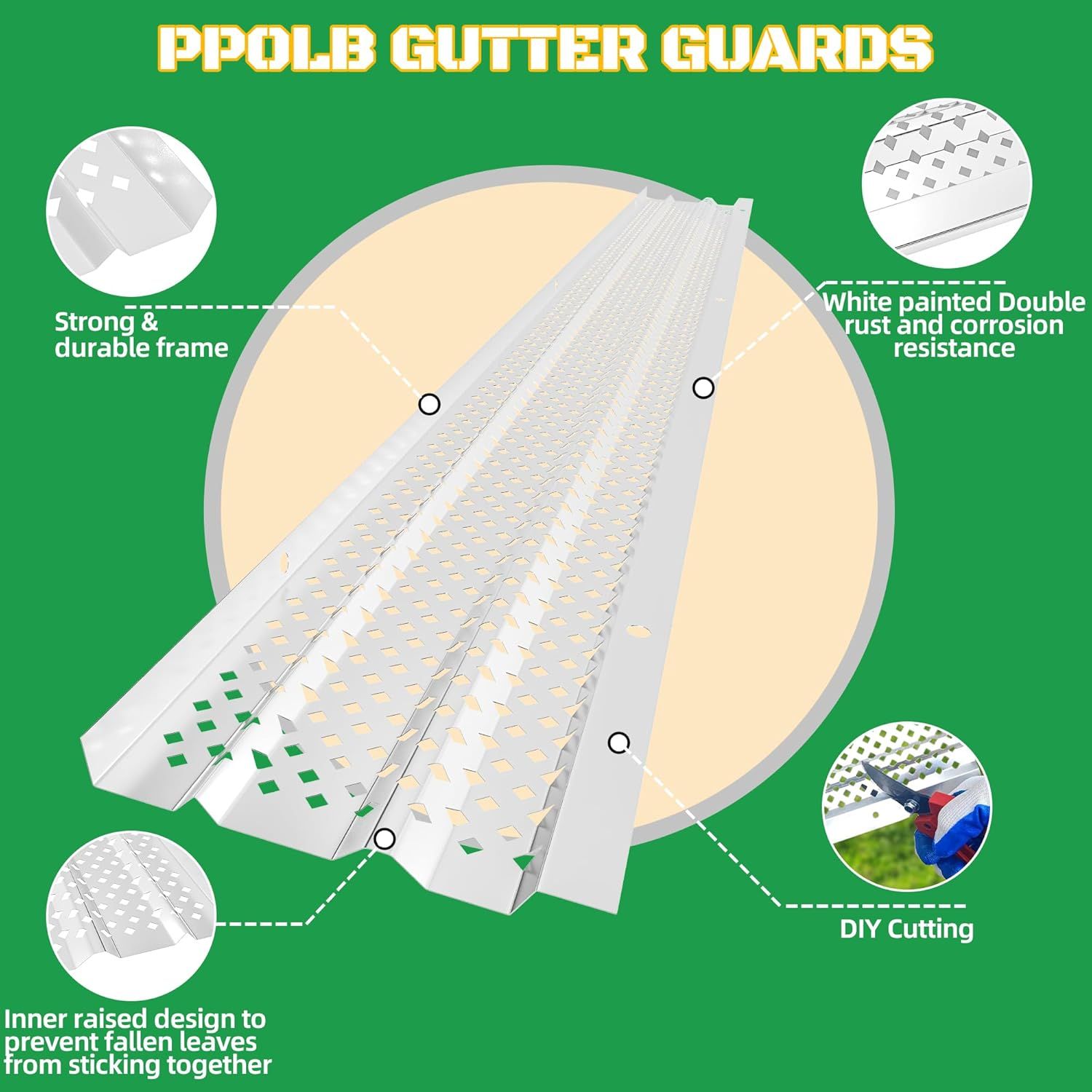 Gutter Guards 5 inch, White Painted Aluminum Leaf Filter Rain Gutter Covers with Screws Included, 64 PCS 216FT DIY Gutter Guards Protection for 5-inch