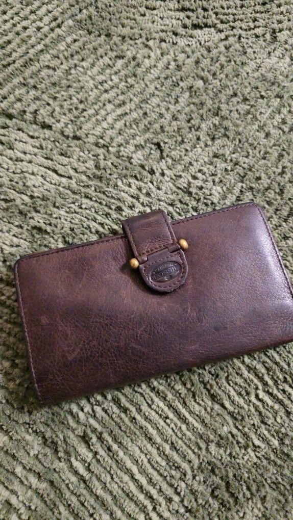 Authentic vintage Fossil leather wallet in dark brown color with snap closure and brass accents. Features multiple card slots, ID window, bill compartments, and an exterior zip pocket. π Size: approx. 7.5" Γ 4" (19 Γ 10 cm) π Condition: Pre-owned, good vintage condition, shows normal wear consistent with age. A stylish and practical Fossil wallet, perfect for everyday use or as a collectible piece.