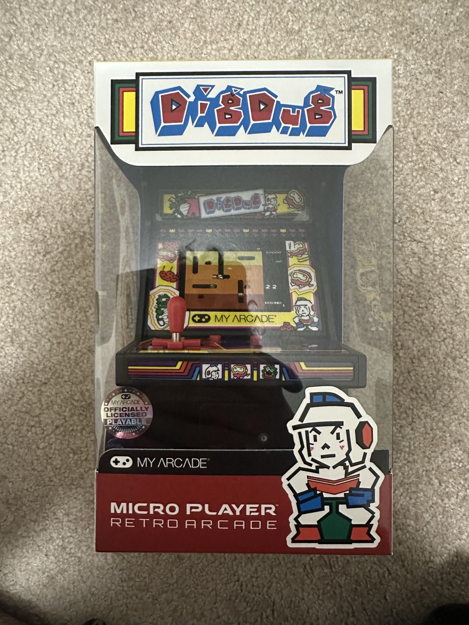 Dig dug License dealer retro games Officially licensed, fully playable title. High resolution, 2.4” full color vertical display. Features artwork inspired by the original dig dug arcade cabinet. Built-in, rear-facing speaker with volume controls. Powered by either 4 AAA batteries (not included) or by a USB-C® cable (not included).