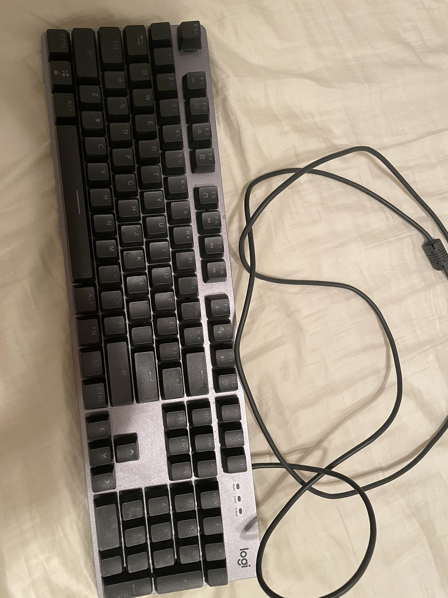 Selling this Logitech k845 white backlight cherry blue switches full size keyboard.