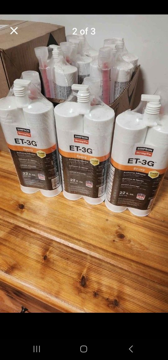 (3) SIMPSON Strong-Tie ET-3G 22 fl. oz. Epoxy-new/factory sealed. Will not separate > I have a $60 minimum per transaction. If you want to add one of these 22oz to another one of my listings at $25 per-let me know.