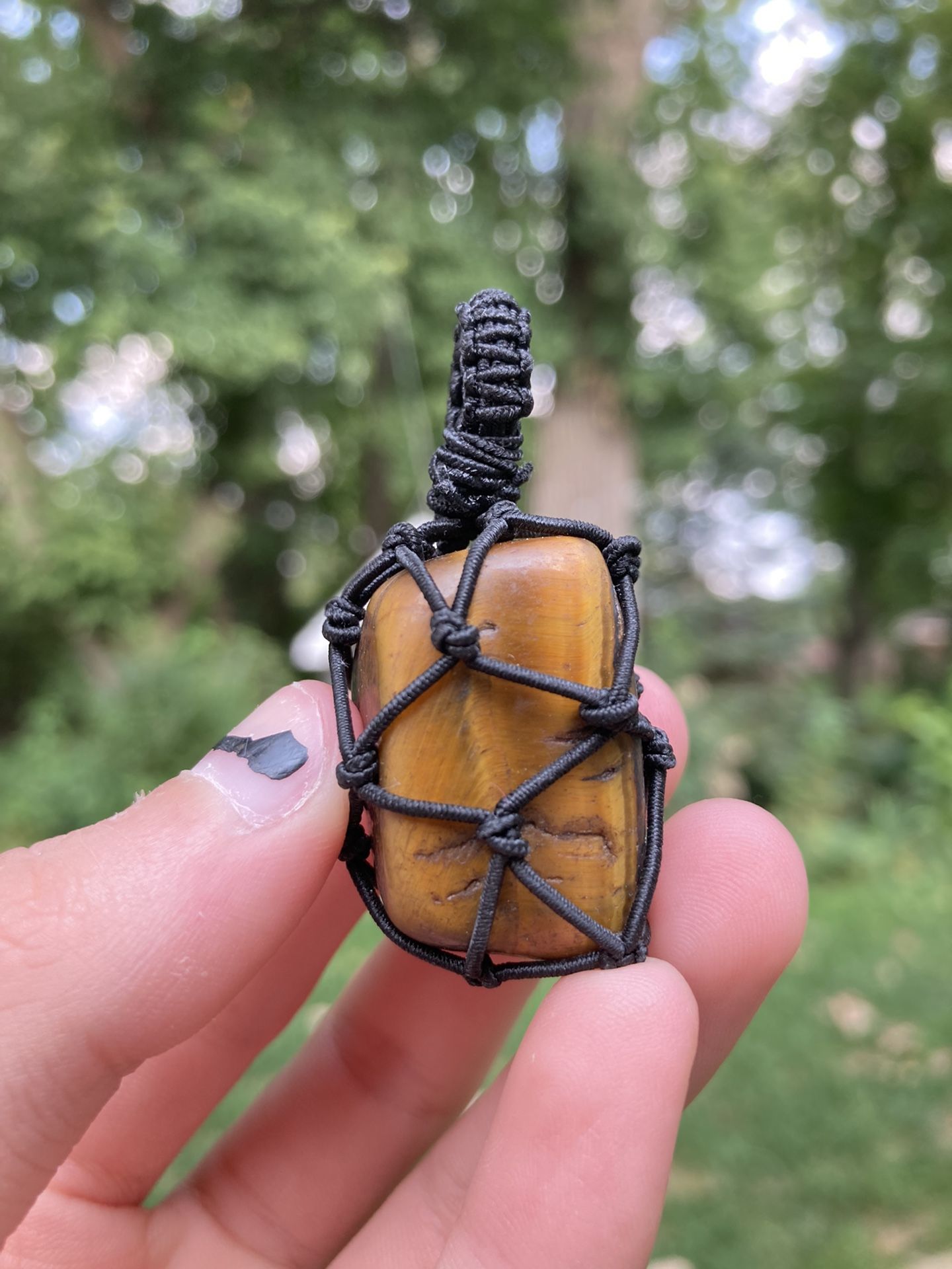 Handmade Tigers Eye Macrame Necklace Pendant Pendants are made to order!! Every single one will have a different, unique piece of a natural Tigers Eye stone hand-wrapped in either your choice of a black or white string. (Chain not included) Please message me with any questions :)