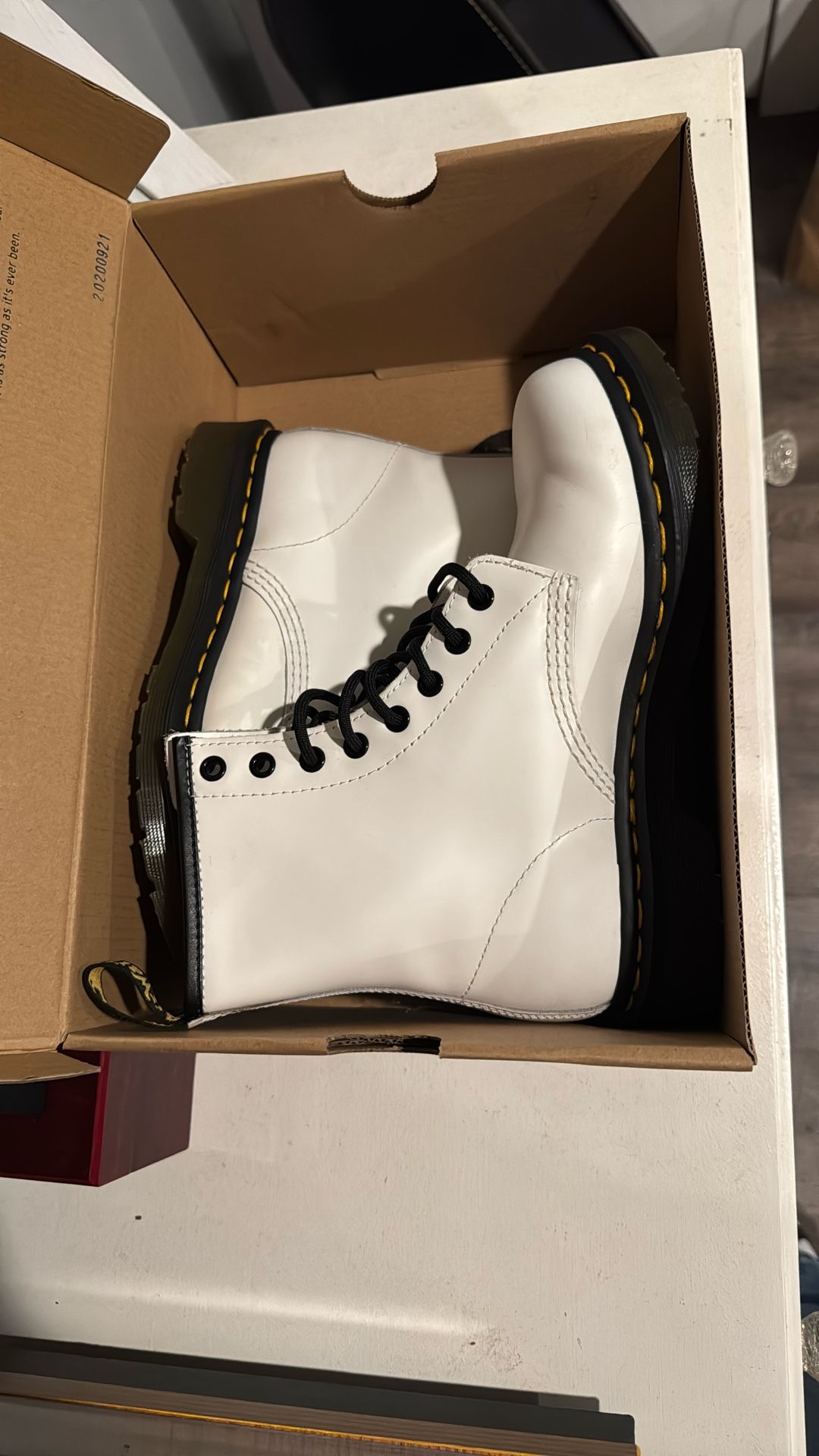 Basically new white doc martin women’s boots, white size 7. Used once.