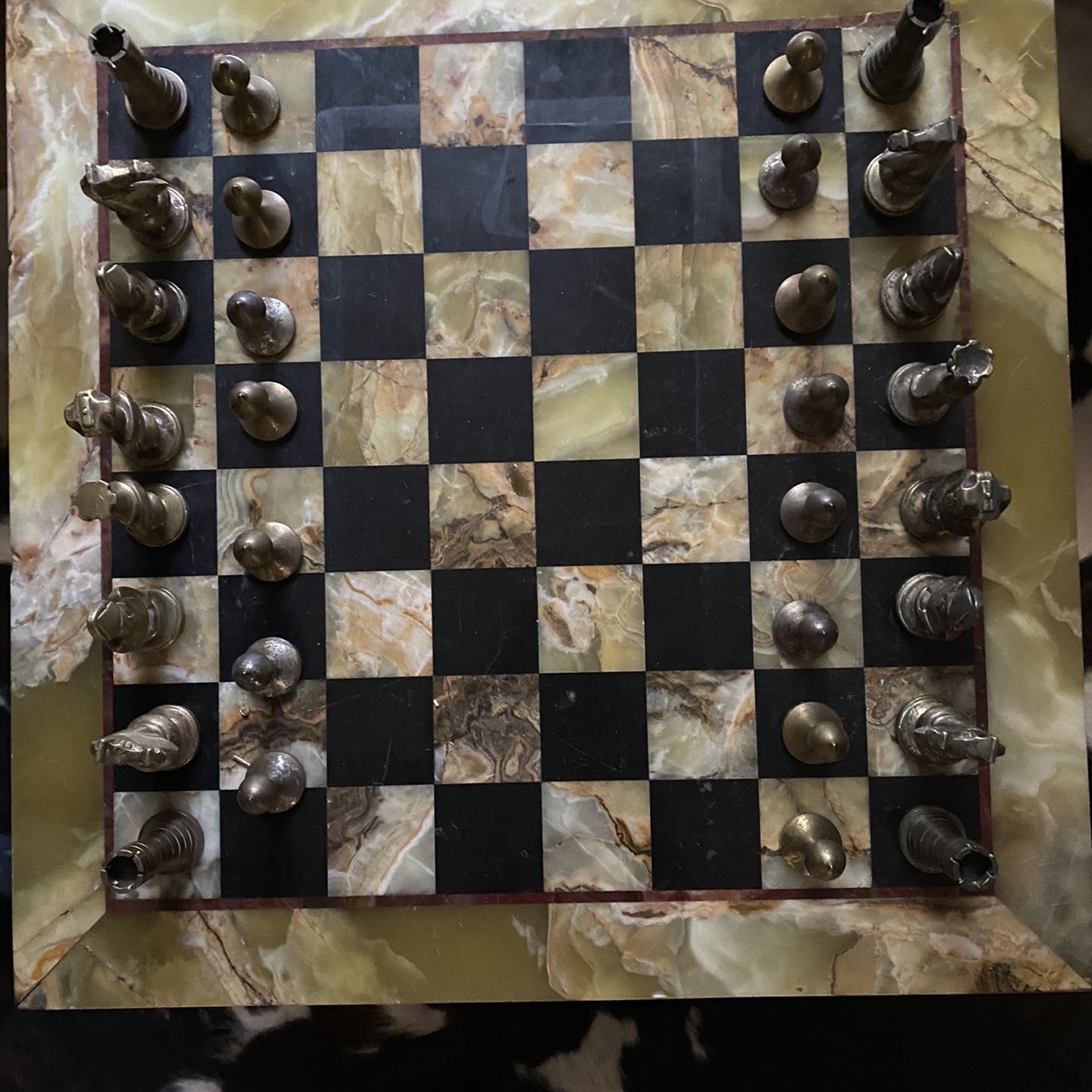 Very rare antique chess set with marble top and bronze playing pieces $895 OBO
