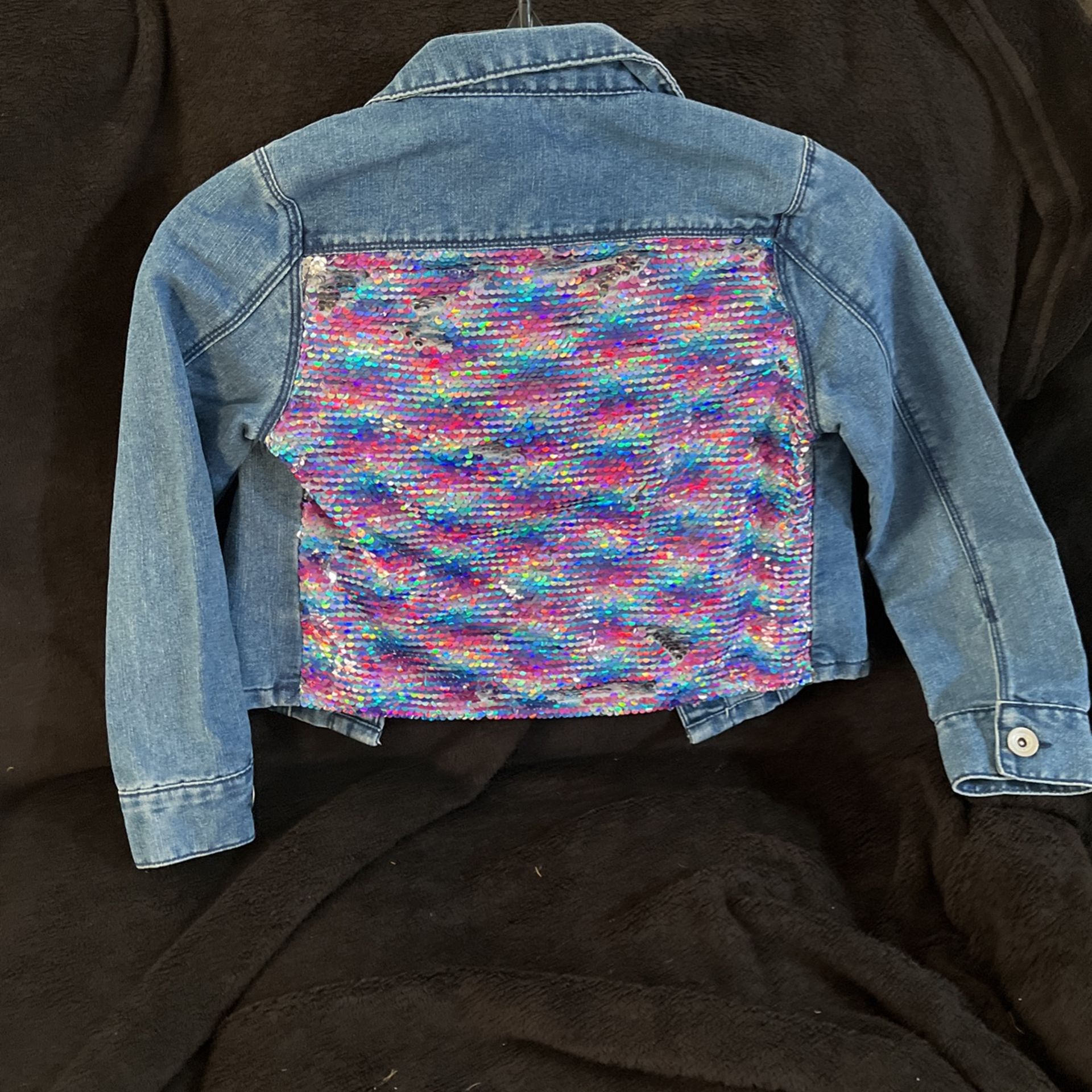 Size 10 Flip Sequins Jean Jacket Fits More Like 7/8