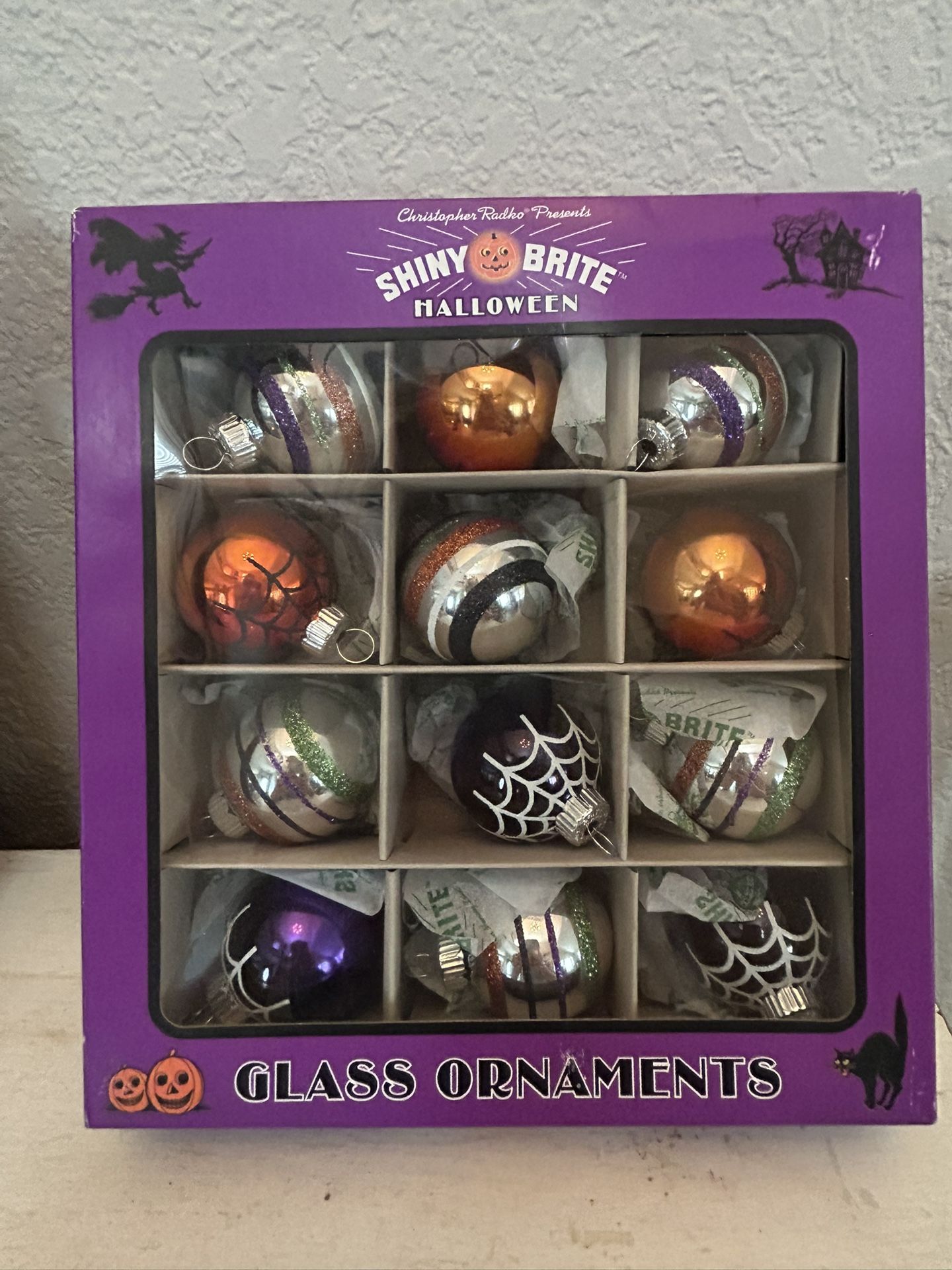Cool box set of collectible Christopher Radko for Shiny Brite Halloween ornaments box set of 12. Perfect for your Halloween tree or decor. Also great for a shiny Brite collector. I have three boxes as of these ornaments. Cross streets for pick up: Chandler Boulevard and 34th St. in the Iowa area Phoenix. Check out my other listings, including other Halloween and holiday decor.