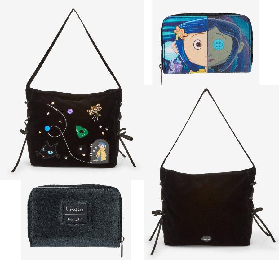 Her Universe Coraline Icon Embroidered Hobo Bag & Loungefly Split Face Wallet Set