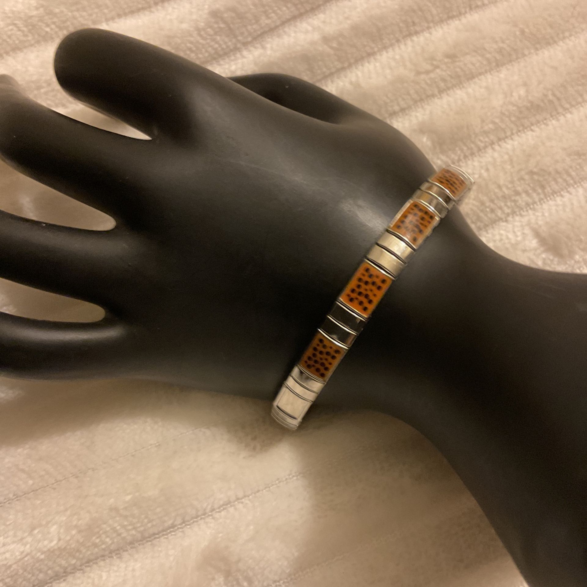 Stainless Steel And Leopard Print Stretch Bracelet