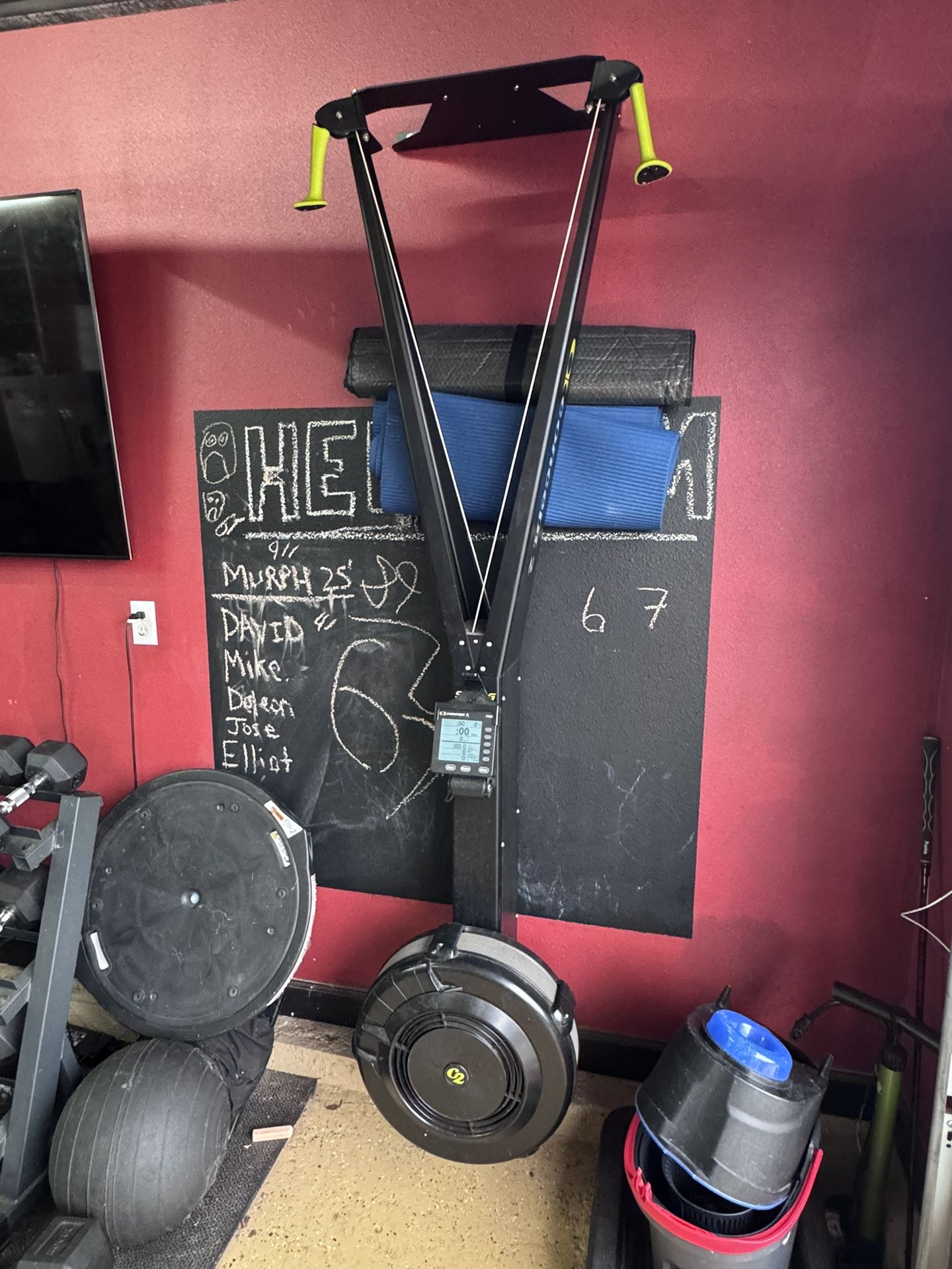 The Concept2 SkiErg is an American-made, precision engineered Nordic skiing machine from the makers of the industry’s most trusted indoor rowers. Adapting key rowing machine elements like flywheel resistance and a state-of-the-art PM5 Performance Monitor, the SkiErg turns the athlete’s orientation vertical, simulating the movements of real cross-country skiing with both double-pole and classic alternating arm technique. These movements offer one of the most challenging strength and endurance tests available in a fitness machine, targeting the legs, arms, and core for a full body workout adaptable to any athlete’s size and skill level. Wall mounted version Still works great.