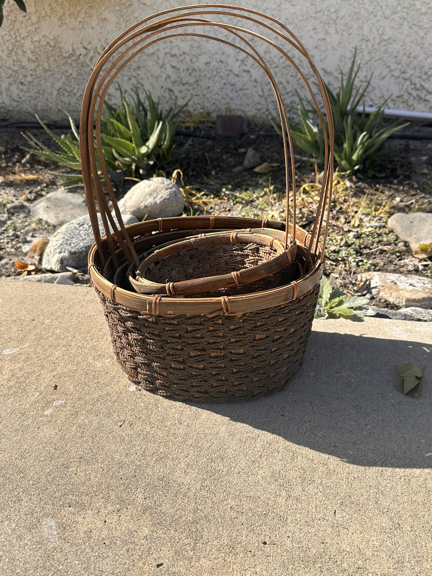 Set of 3 Nested Wicker Market Baskets with Handles