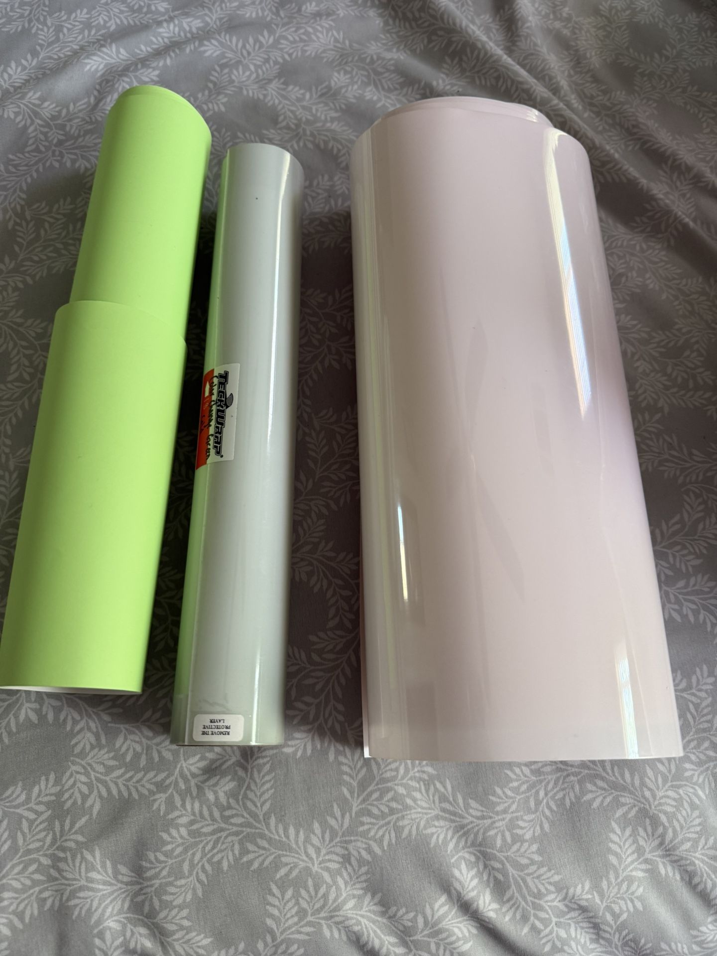Color changing permanent vinyl Light pink to red Light green to Green Green vinyl is glow in the dark Teckwrap brand Each have 3ft-5ft $15 for all