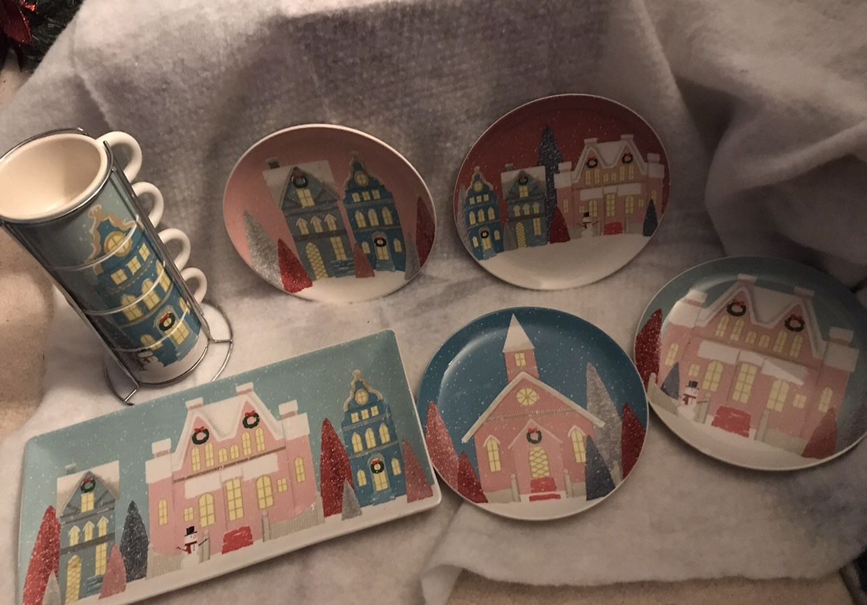 Christmas Set Of Plates, Serving Platter, Stackable Cups From Pier 1 Imports