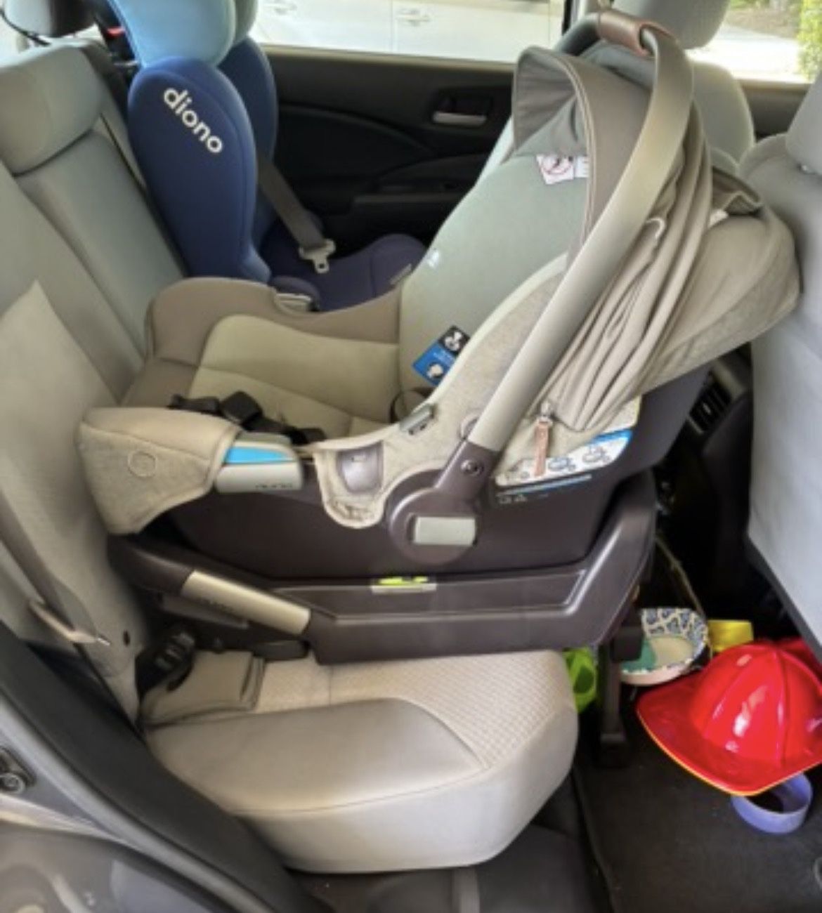 Excellent condition car seat in pine color. Two bases to use seat with two cars.