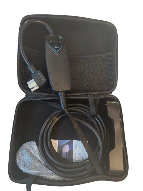 This portable charger is designed to provide fast charging for EVs, delivering up to 9.6 kW at 40 amps when connected to a NEMA 14-50 outlet. It is compatible with all J1772 standard electric cars and plug-in hybrids, and a specific version is available for Tesla models. The charger features LED indicator lights to show the charging status (Power, Connect, Charging, Error) and some models offer WiFi connectivity for app-based monitoring and scheduling. It is ETL Certified, Energy Star rated, and designed for safety with features like overvoltage and overcurrent protection. The portable design, often including a carrying case, makes it convenient for use at home or while traveling. RETAIL $300!!!