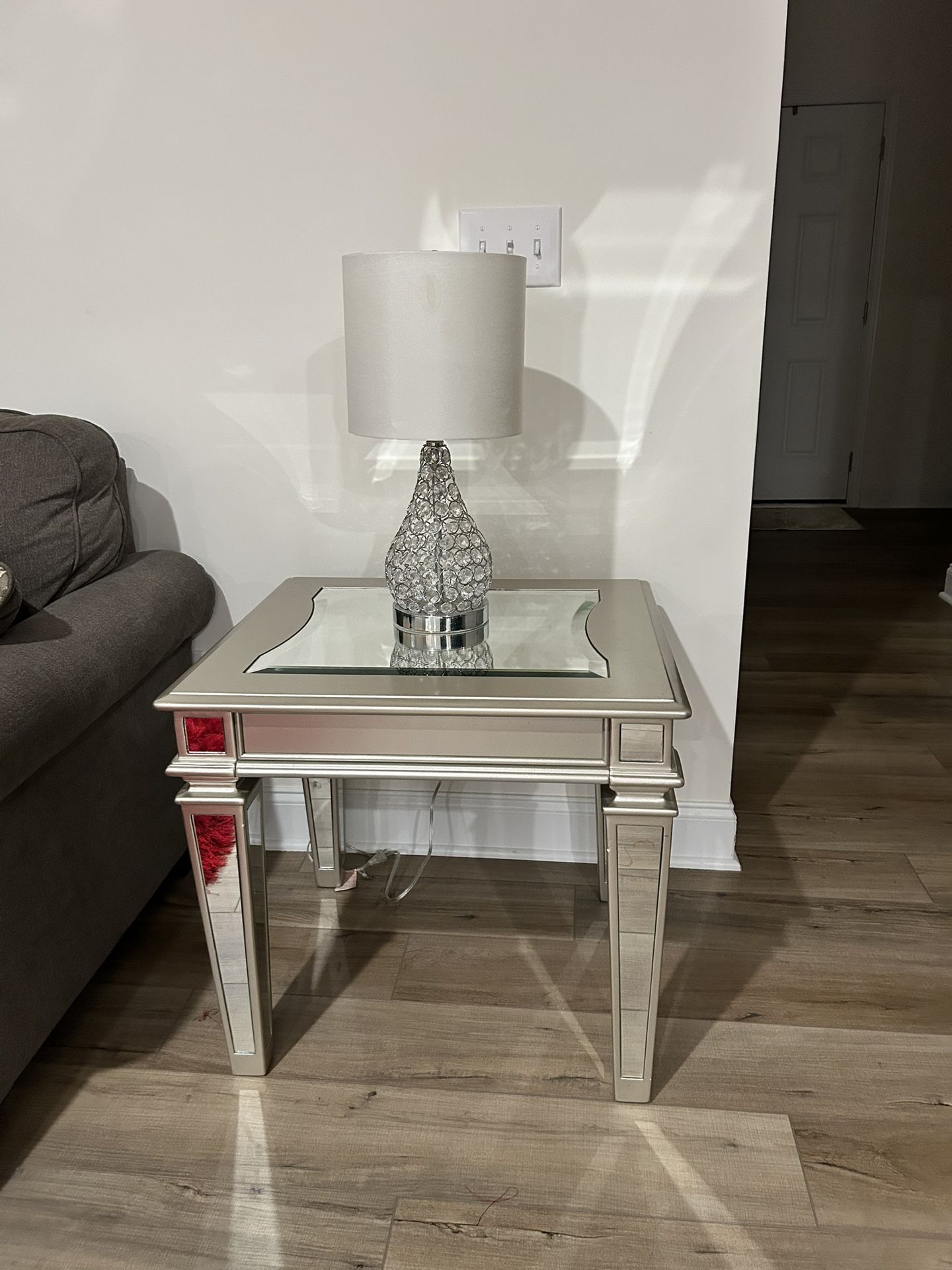 Silver Mirrored 3 piece ASHLEY coffee table set with 2 side tables. Gently used.