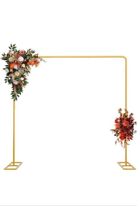 Wedding Square Backdrop Stand,Wedding Arches for Ceremony Square Metal Balloon Arch Stand Garden Arbor Frame for Wedding Birthday Party Baby Background Decoration,6.6FTx6.6FT Gold
