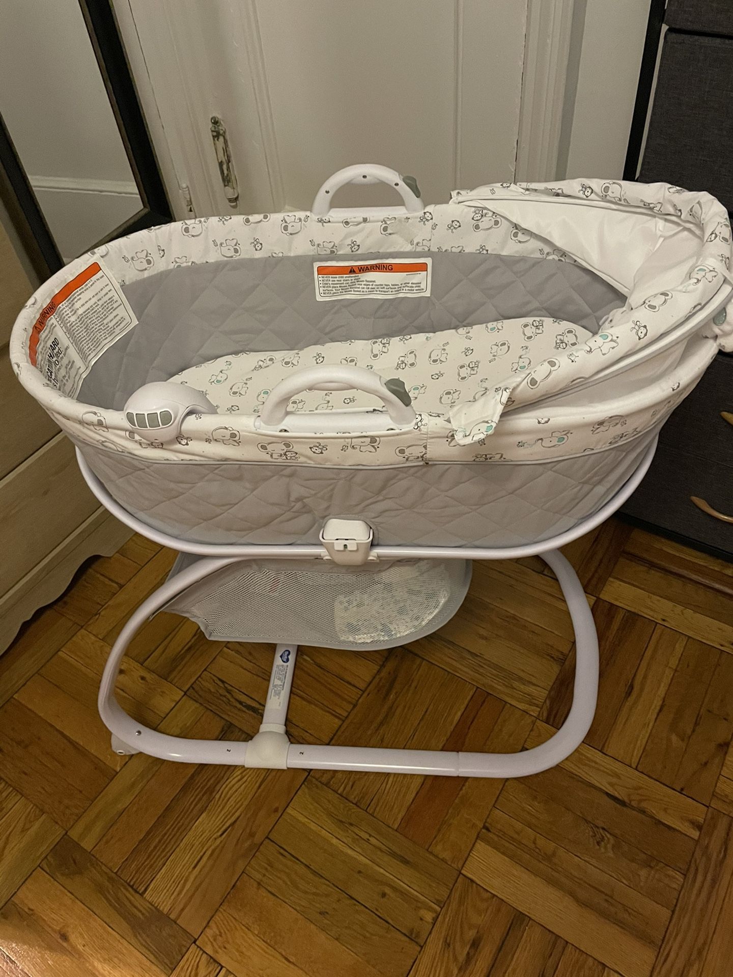 Amazing bassinet for baby up to 6 months. It’s new the reason why we are selling it it’s because we got as a gift different one. It comes with few music noises and vibration