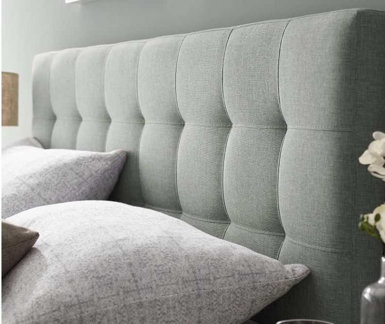Brand new, still in the box Twin Upholdered Headboard Perfect for a kid's bedroom, guest room, or college dorm, this upholstered headboard is covered with quality polyester fabric granting a luxe linen texture all over. This upholstered fabric headboard has seven height adjustable mounting positions for a customizable look that attaches to most twin bed frames Item Dimensions W x H 39"W x 22.5"H