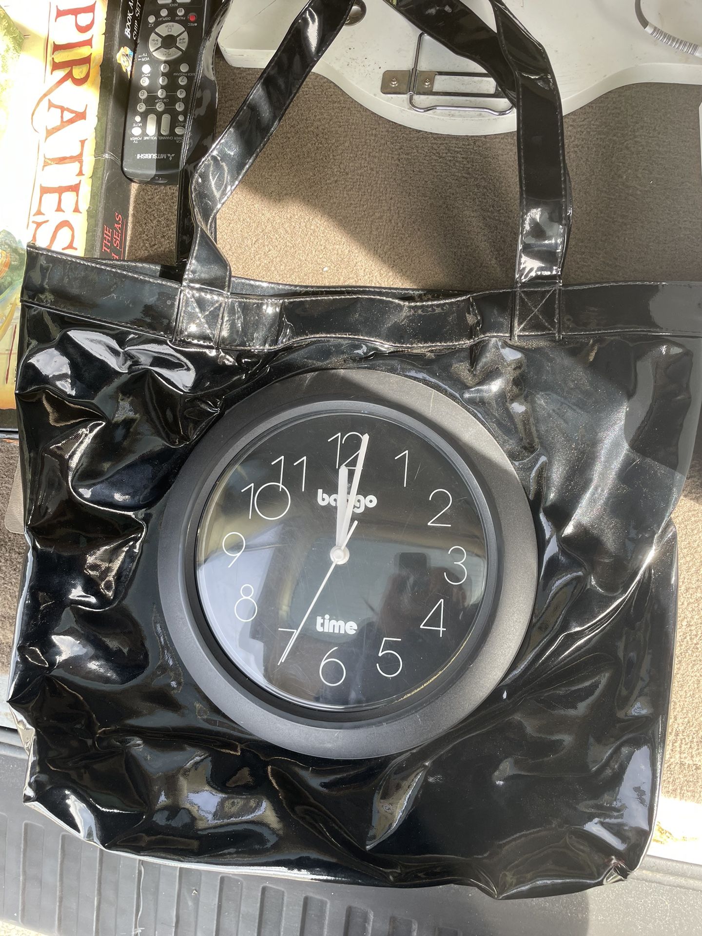 Black leather clock purse ! Good condition ! Nothing wrong no damages! Just need regular double a battery for clock! Leather still good and inside still good ! $18 obo