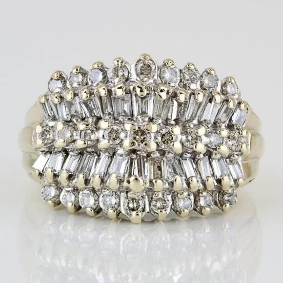 10k Yellow Gold Round + Baguette Diamond Cluster Cocktail + Anniversary Ring