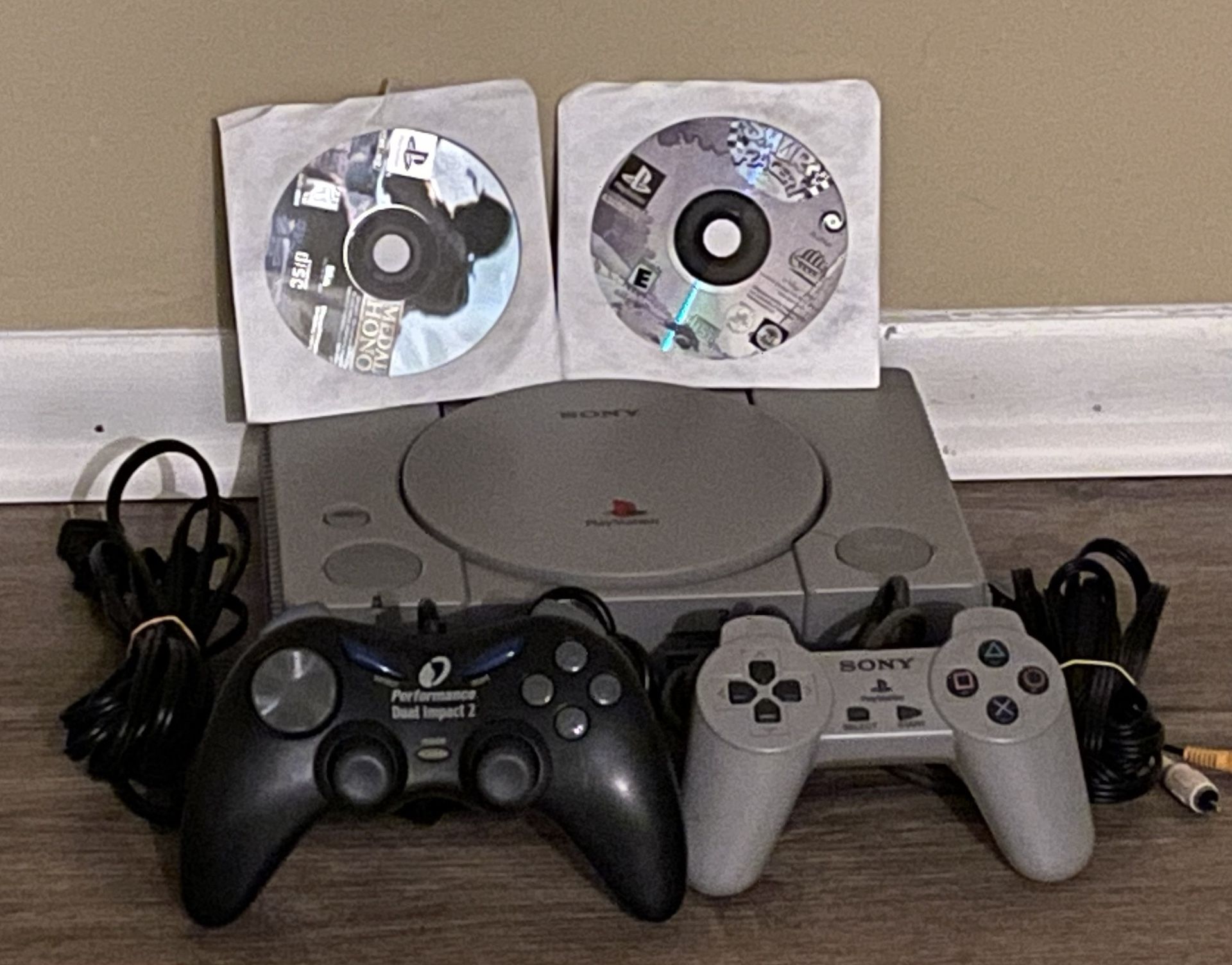 PS1 in good working condition. Comes with all cords. One original controller and one aftermarket controller. Includes Medal of Honor and Smurf Racer(both disc only) Cash only. Pick up in Hoffman Estates