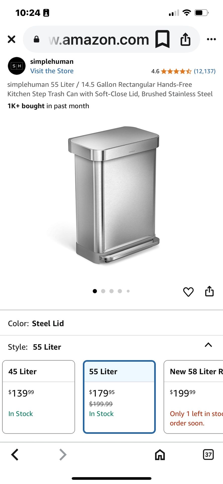 Simplehuman hands-free rectangular step on trash can. Stainless steel- hardly used. Excellent Condition.