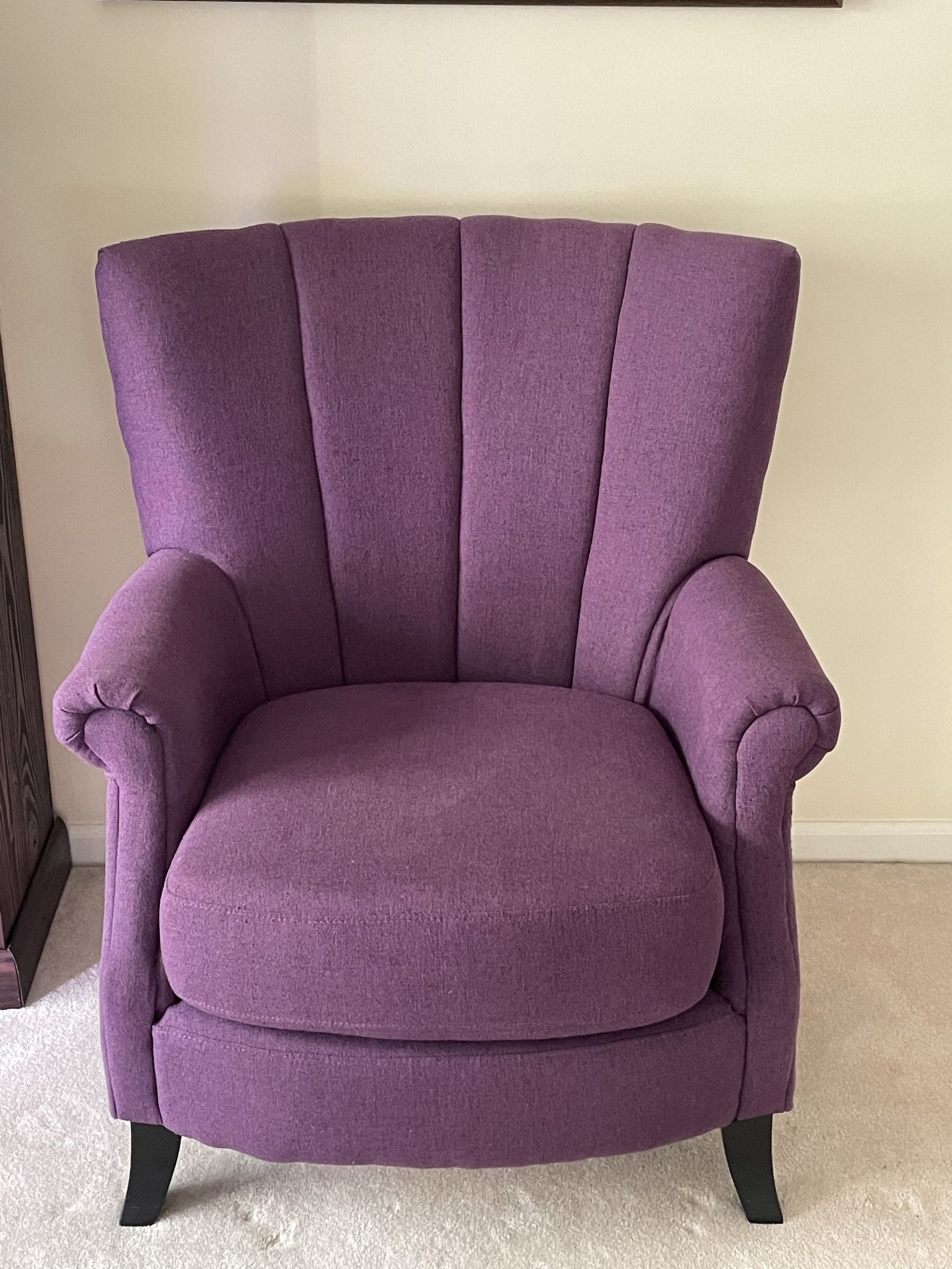 Purple armchair 36” tall and about 28” wide In good condition, but fabric is worn on armrest left side. Smoke free home.