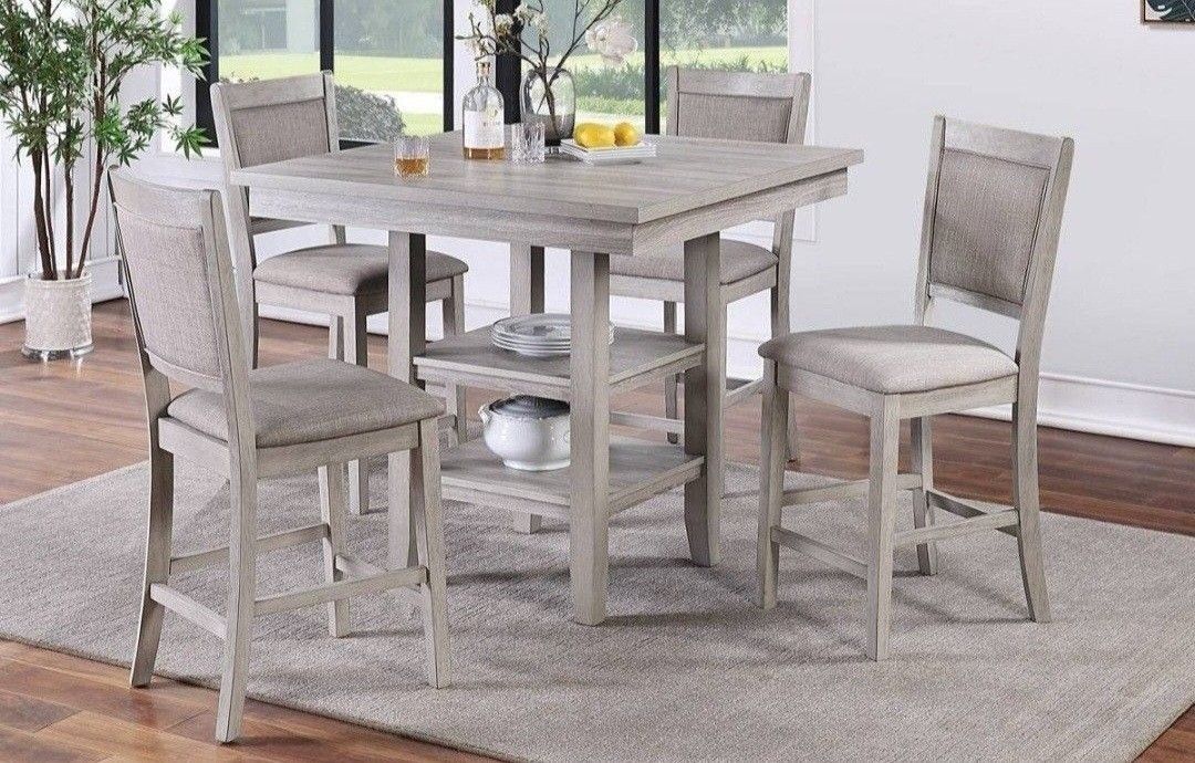 ✅️ 5 pc Wildon studio rustic natural tone, finish wood and fabric counter height dining table set ✅️✅️