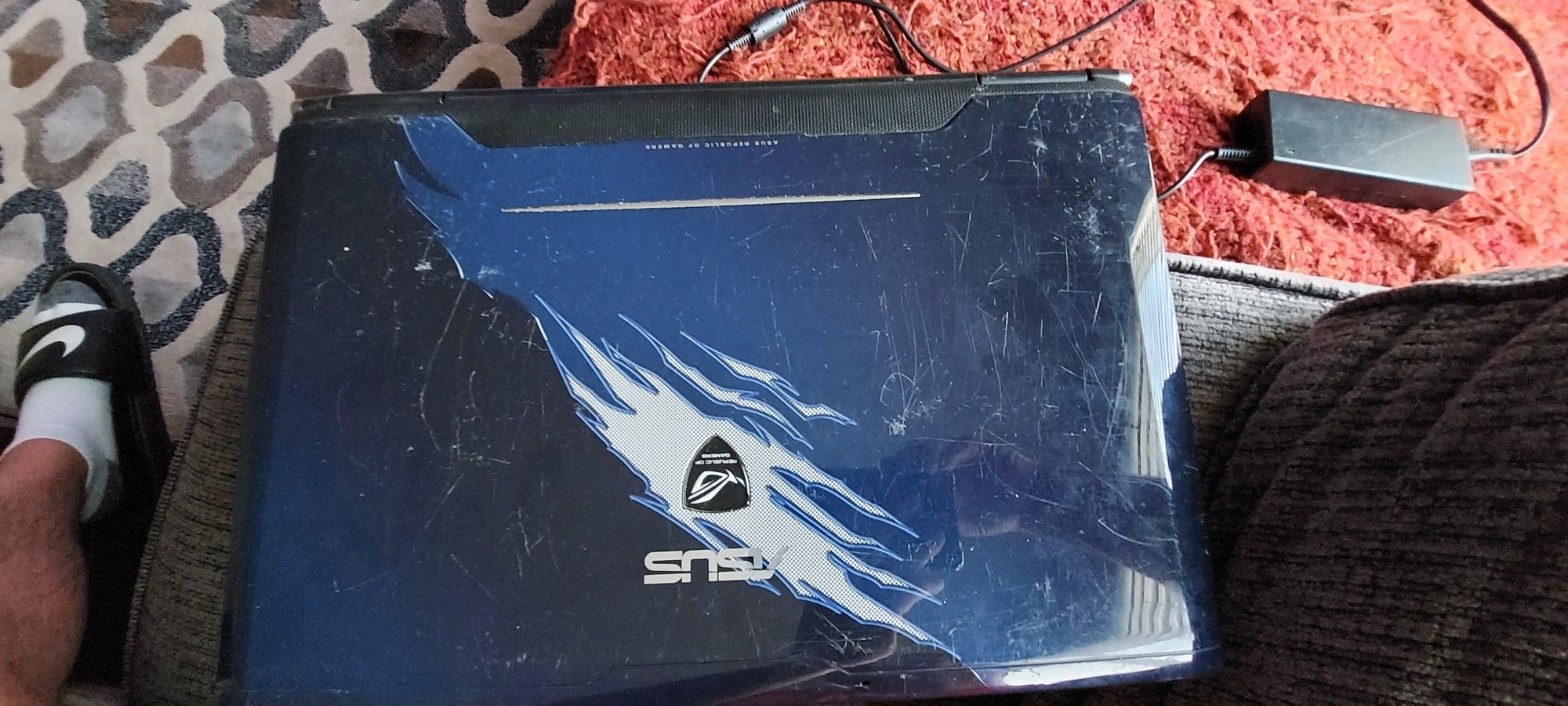 Asus ROG G60V. Windows 10. Intel core 2 duo 2.4ghz. 3gb ram but i can upgrade it. Nvidia geforce gtx 260m 1gb. Needs new battery and charger