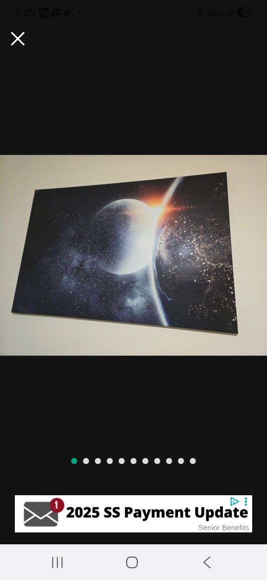 Large glow in the dark space canvas art frame 32×48, color changing shuttle lamp, planet neon light, book holders, picture frame, phone holder, 3 mini astronauts, and 2 space themed curtain balances and rods. Everything looks brand new. Great for space themed room. Spent over $350 for set.