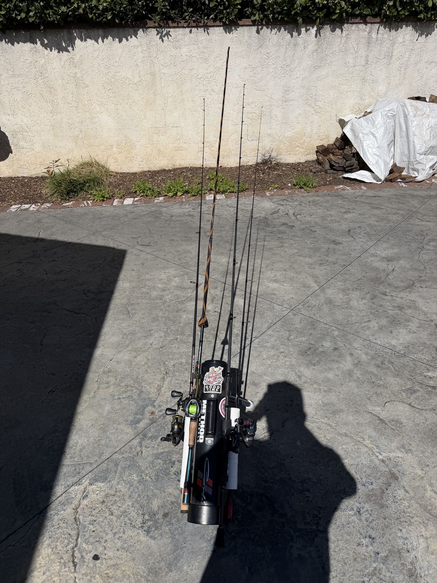 Fishing rod holder for all your fishing needs…. This is great for those long walks to the lake.!! has a hidden storage compartment as well… beats the $80 one from bass pro