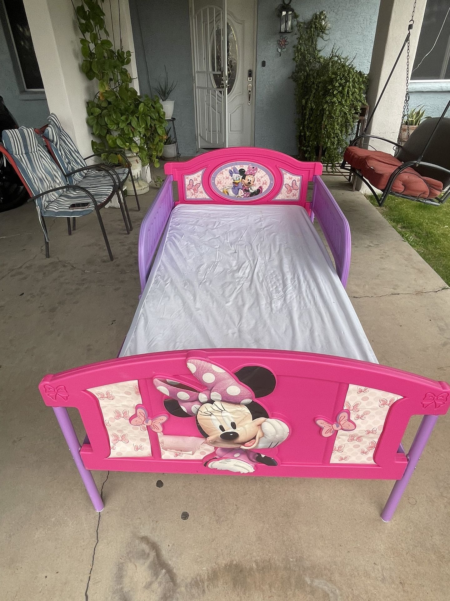 Twin bed for Girl Comforter included ! Barely used nothing is wrong with it. Colors: Pink and Purple