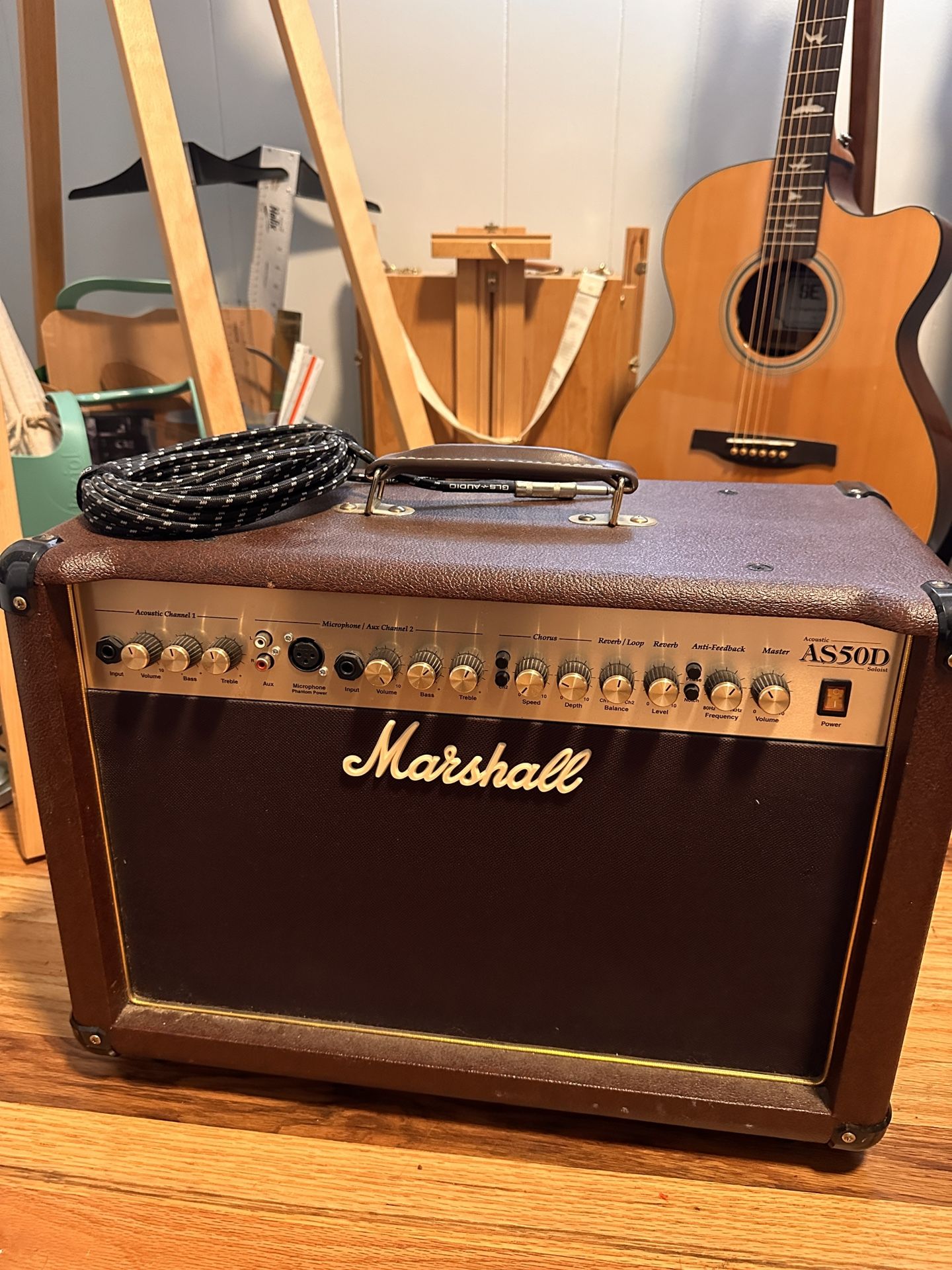 Marshall AS50D 50W 2x8 Guitar Amp. MSRP $450. Part of an international moving sale. Please explore our other items for deals on bundles!
