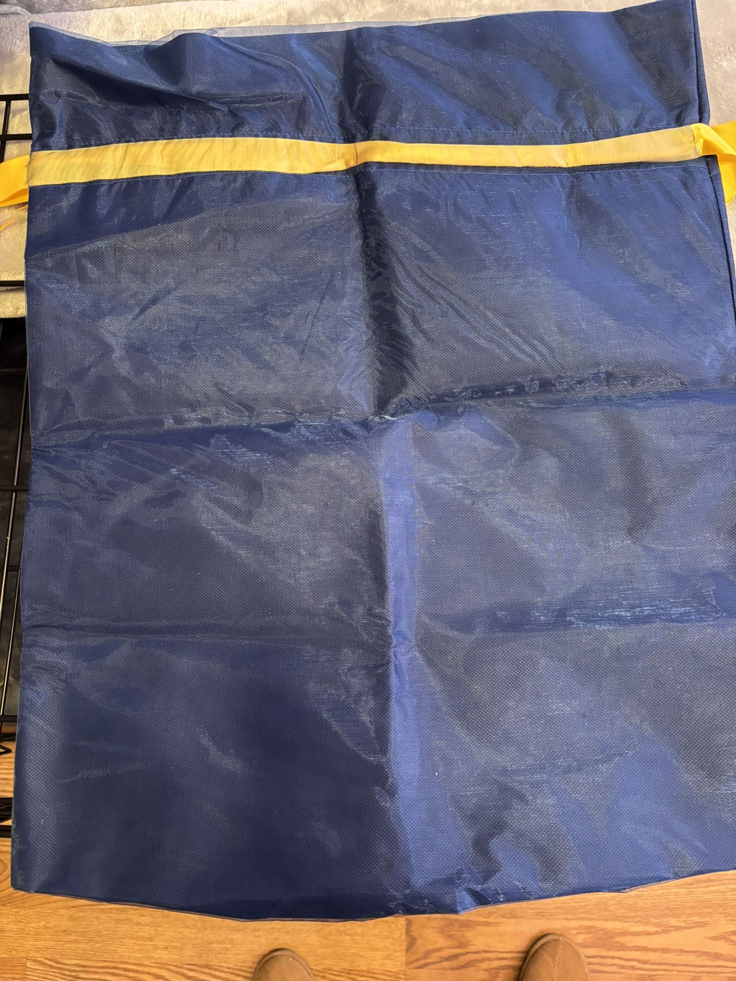 Blue and gold Large nylon bag for giving gifts. Lined so can’t see what’s inside.