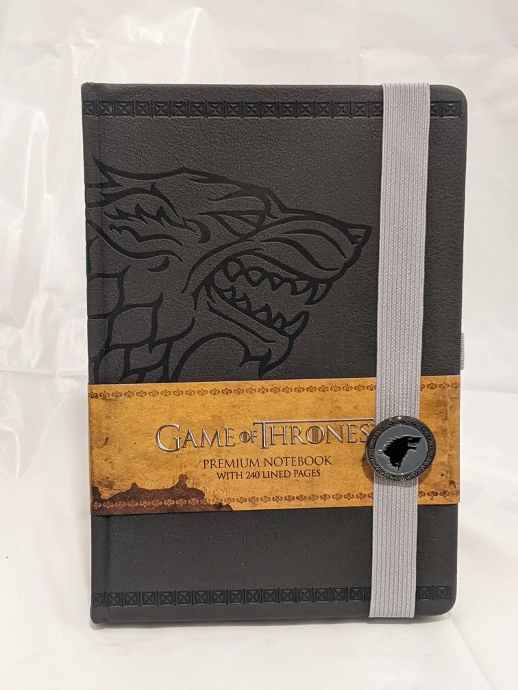 Beautiful leather bound notebook from the best selling novel/hit TV show Game of thrones. Comes with, house Stark Pin.