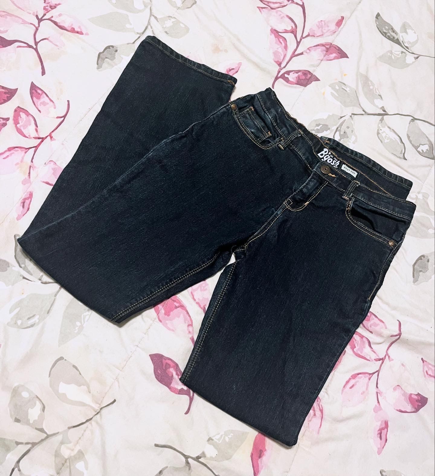 Girls denim jeans, oshkosh brand, size 12R, dark blue wash, adjustable waist, boot cut style, excellent condition