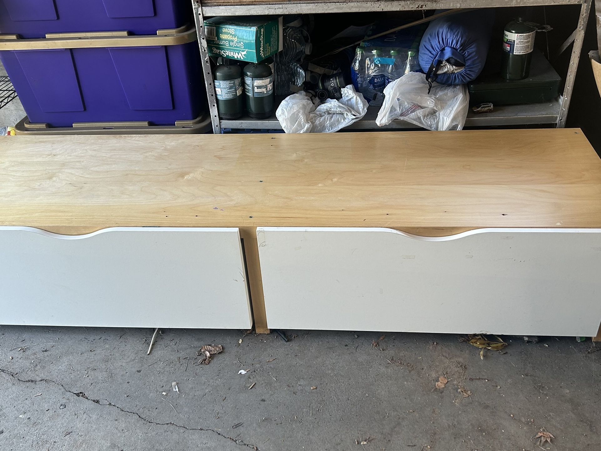 Used ikea media base with two large drawers. It was originally used with another base to hold a bunk bed so there are some screw holes in the top. You can get creative and use pretty contact paper to cover or fill them with wood filler. They are pretty unnoticeable in general though. Dog friendly home. Non smoking home. Pictures show length, width and height.