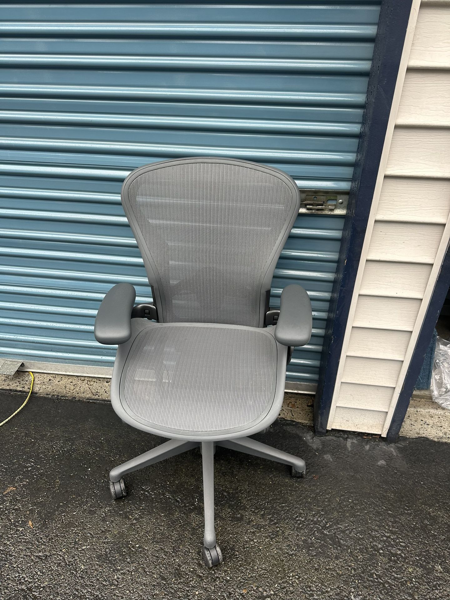 Fully Loaded Herman Miller Aeron Size B!!! We Also Desks, Chairs , File Cabs And More!!! Remastered retails $1800+ Fully loaded with all adjustable features Size B In like new condition. Standing Desks we have available: Ergotron standing desk converter-$100 48” white laminate-$325 jrb studio , $125 conset 48” gray laminate-$400 Jrb studio, conset $215 54”’white laminate- $340 Jrb studio 54” colored laminate- $ 375 Jrb studio 60” white laminate- $150 Conset, $350 jrb studio, 60” colored laminate of your choice-$400 Jrb studio, $240 72x24 black laminate & white laminate - $440 jrb studio, 72x30 Cherry Laminate- $450 Chairs available: Herman Miller Mirra 2 semi loaded, Herman Miller Mirra 2 Fully loaded ($450), Remastered Aeron size B fully loaded ($900) Mobile Filing Cabinets (Peds) Available:, Herman Miller White 2 drawer filing Cabinets ($100) Monitor arms available: Herman Miller Flo single arm ($60), Chief Dual arm ($150), Knoll Sapper dual arm ($125) Chief single arm ($60) Dell Monitors available: 23” : P2319H ($65), P2317h ($40), and P2314ht ($15), Docking stations available: Dell TB16 w/ 240W power supply ($40) We have business lounge furniture, conference tables, conference chairs, and phone booths available as well!