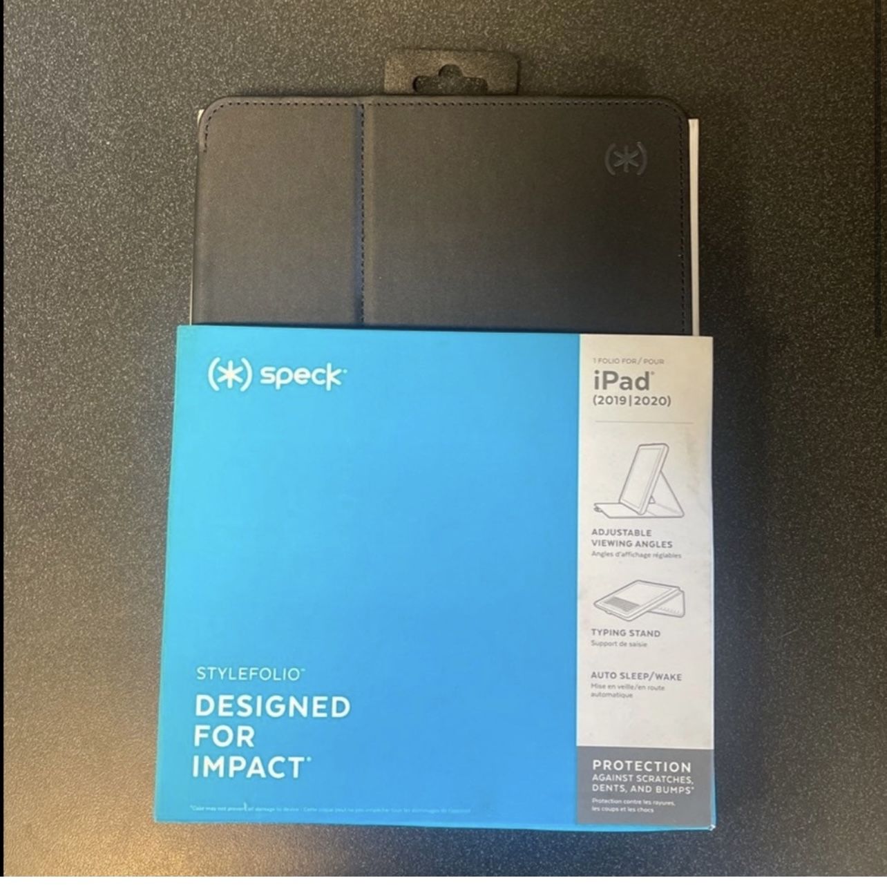 A precision-engineered case designed to make an impact - and take one. This case supports adjustable viewing angles with its viewing and typing stand capability. It also has an auto sleep/wake function each time you open the case. There is a protective interior liner and secure closing, along with a camera shield. *Brand new, never used, in original packaging*