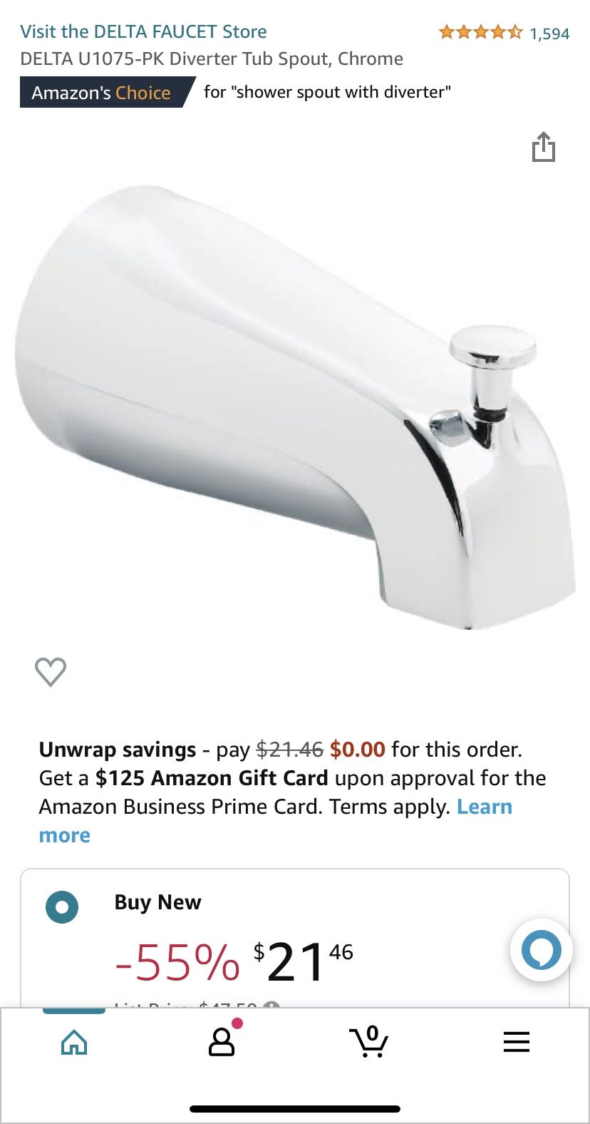 New. Tub Spout with Diverter. Over $30 new. $15