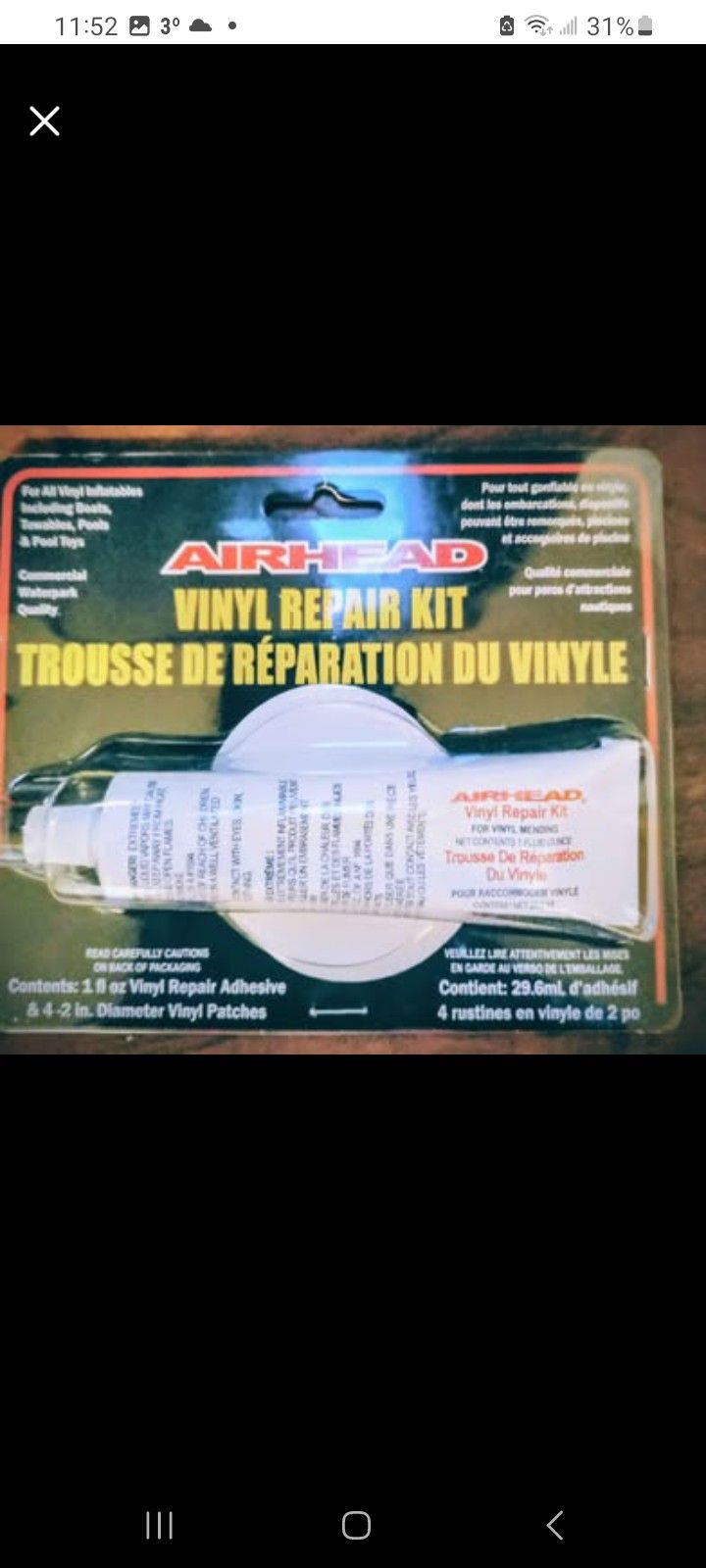 Airhead Vinyl Repair Patch Kit – NewSealed – Commercial Grade Price: $15 Pickup Condition: New / Sealed Category: Tools & Home Improvement → Repai