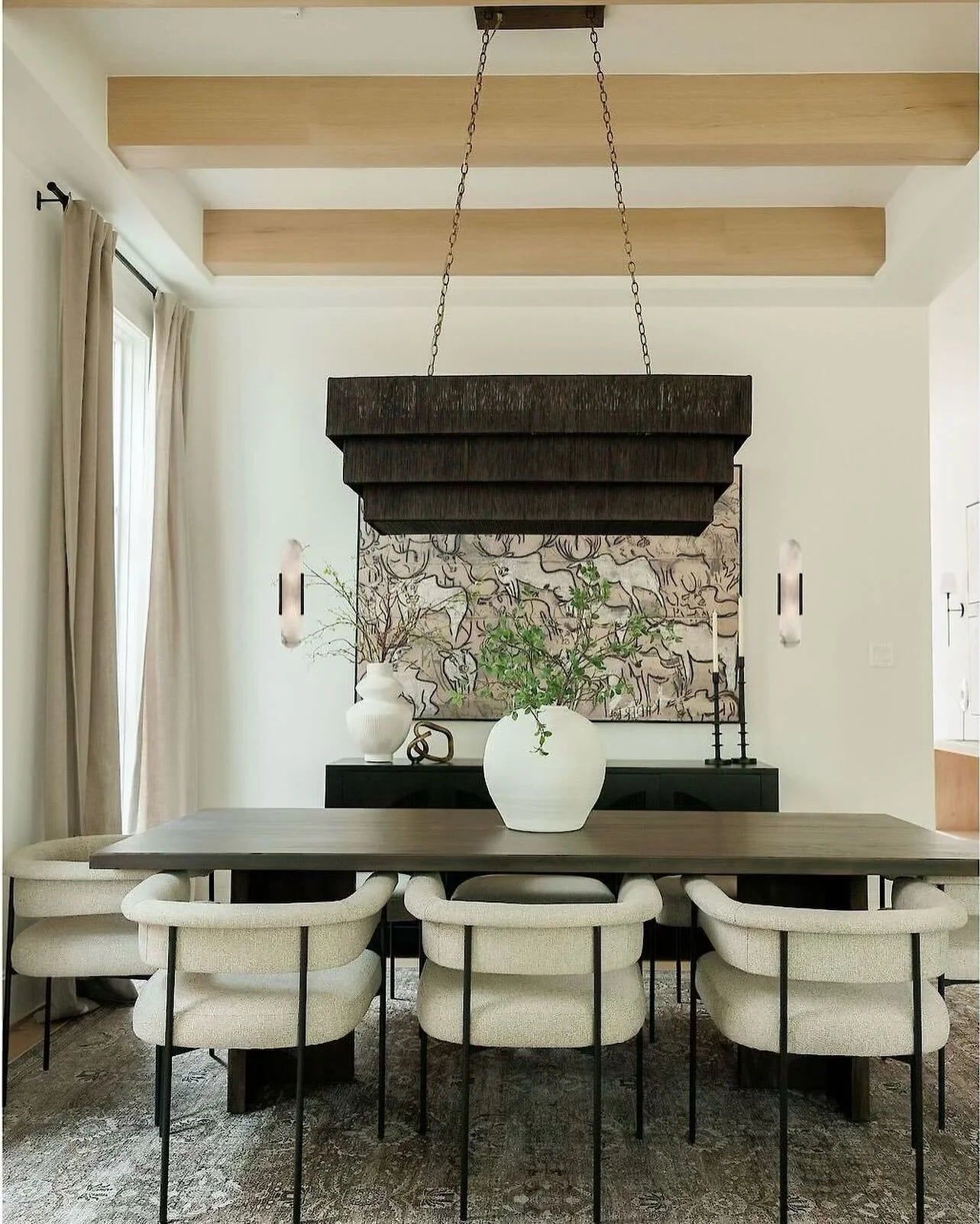 Abaca rope in an espresso finish finely woven over a powder coated metal frame. Chandelier comes with an antique brass finished metal chain and rectangular canopy hanging kit. Professional installation recommended. Coordinates with the Everly espresso collection.
