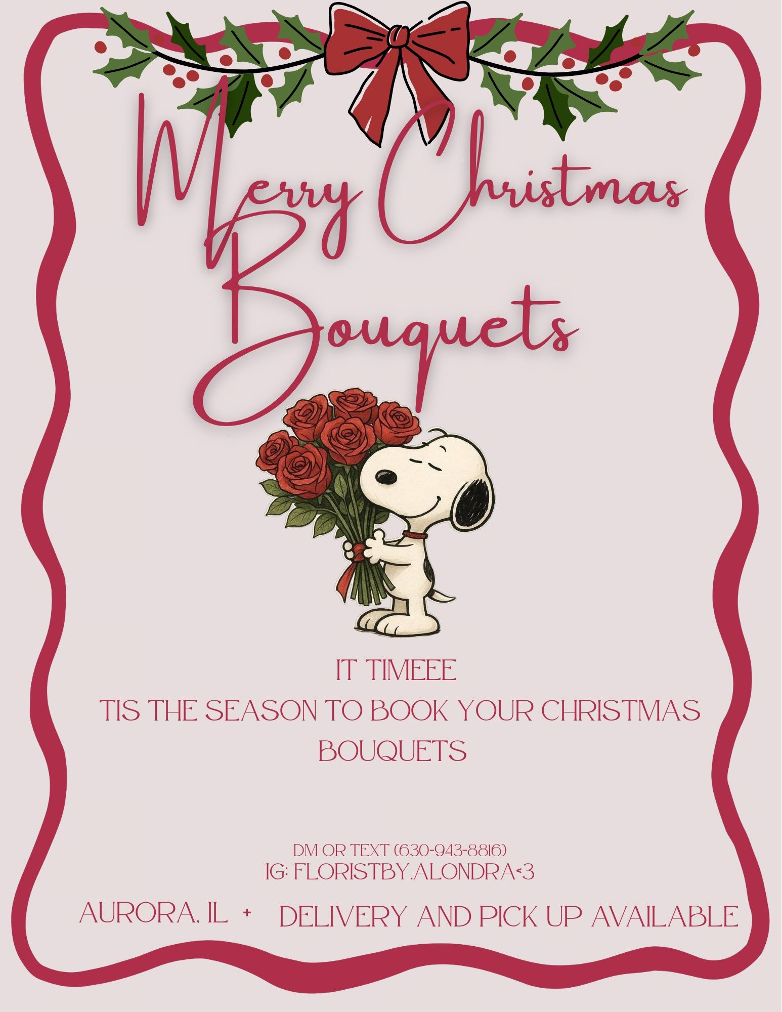 Spread holiday cheer with our beautiful Christmas bouquets! ππ Custom orders welcome. Pick-up or delivery available. Minimum one day notice. ORDER NOW! Ig: floristby.alondra <3