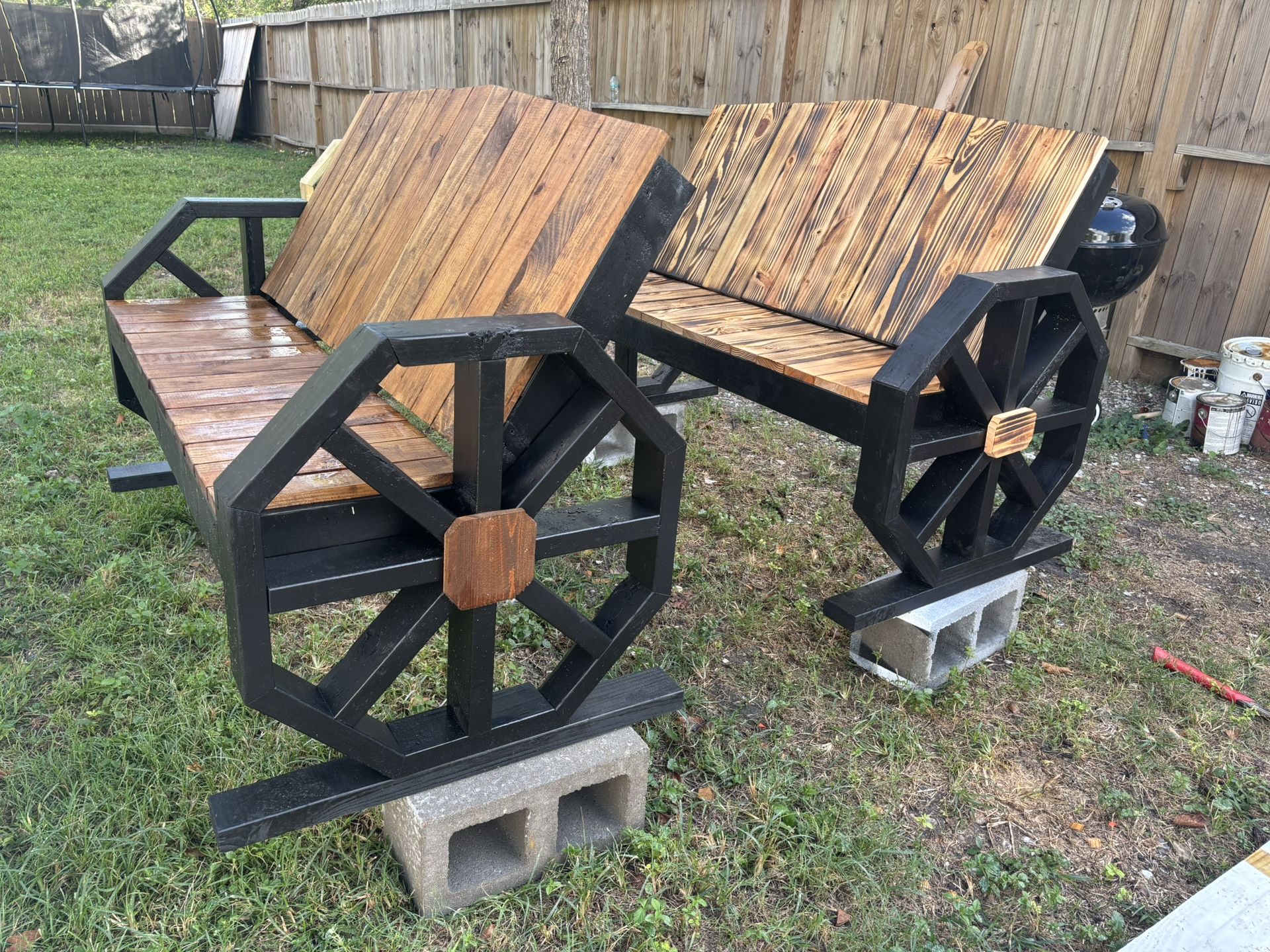 Western benches available, very nice for patios or outdoor activities. All custom made and painted ready to go .