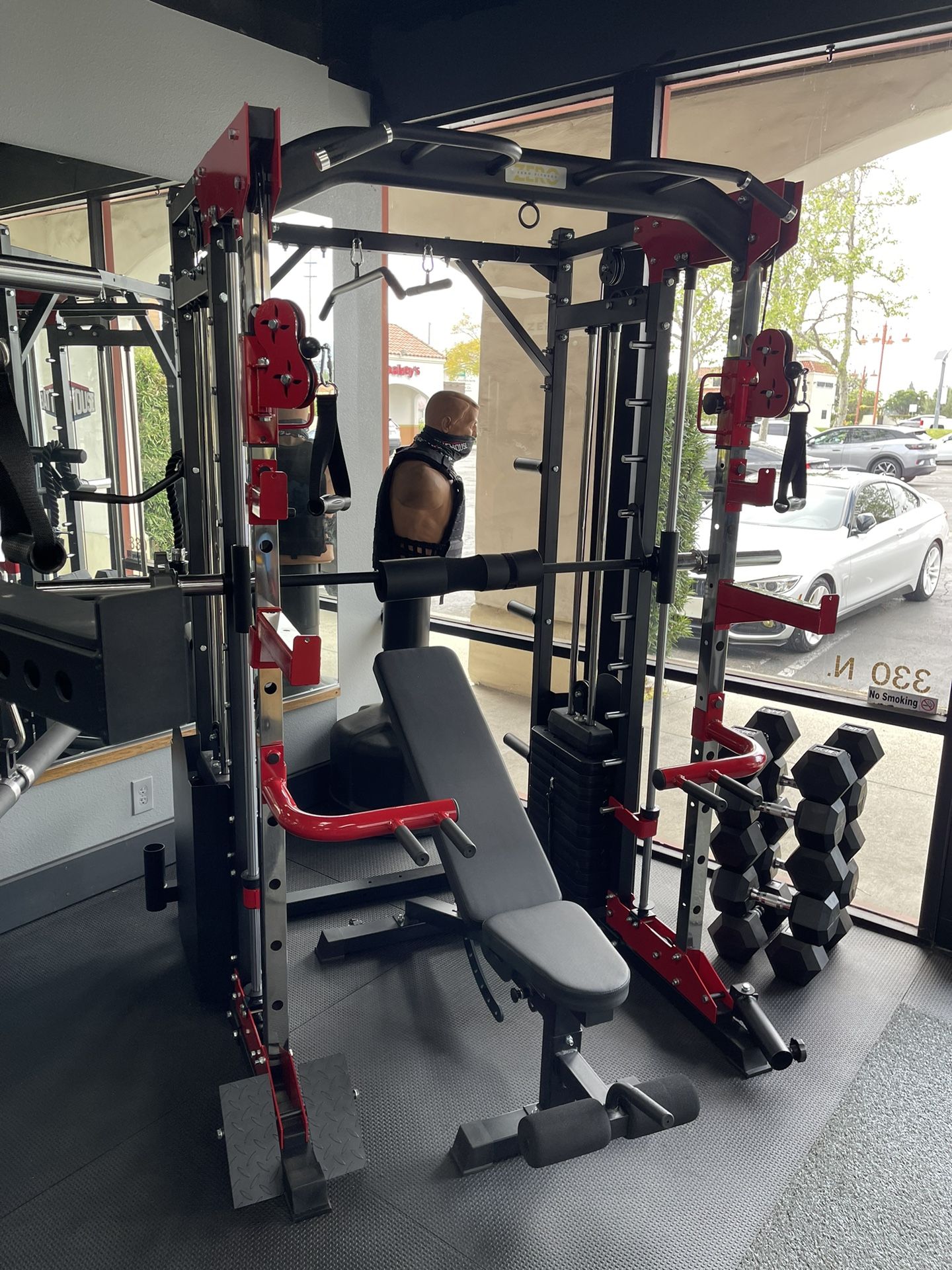 All in one Smith machine, dual cable stack, Squat rack. Complete with dip bars, Landmine, seated row, pull up station, and fully adjustable bench. SM400 Commercial $4400 SM200 All in one trainer $2200 All in one Smith machine, dual cable stack, Squat rack. Complete with dip bars, Landmine, seated row, pull up station, and fully adjustable bench. SM400 Commercial $4400 SM200 All in one trainer $2200