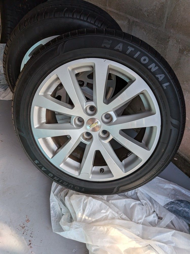 These slightly used tires are from a 2014 Chevy Malibu. I no longer have use for them since I no longer have the car. They are available immediately.