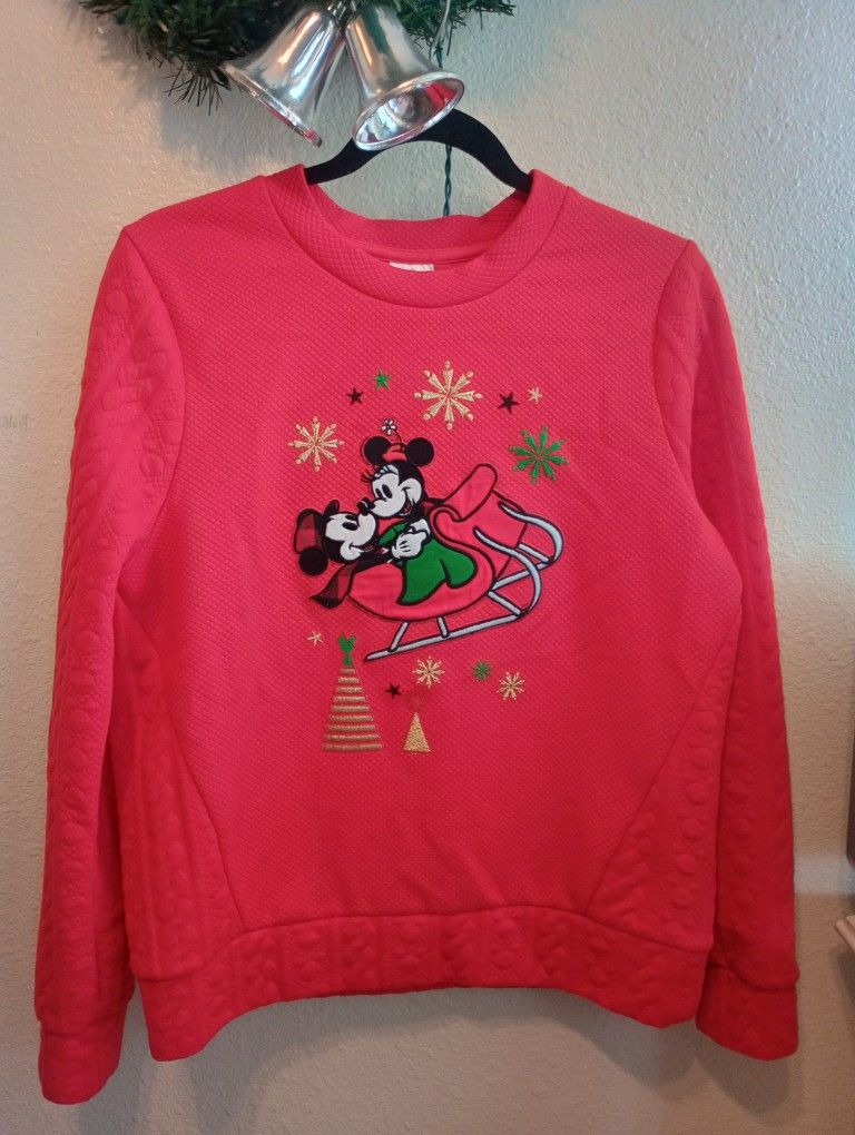 Disney Christmas Mickey & Minnie Adult Small Sweater Quilted