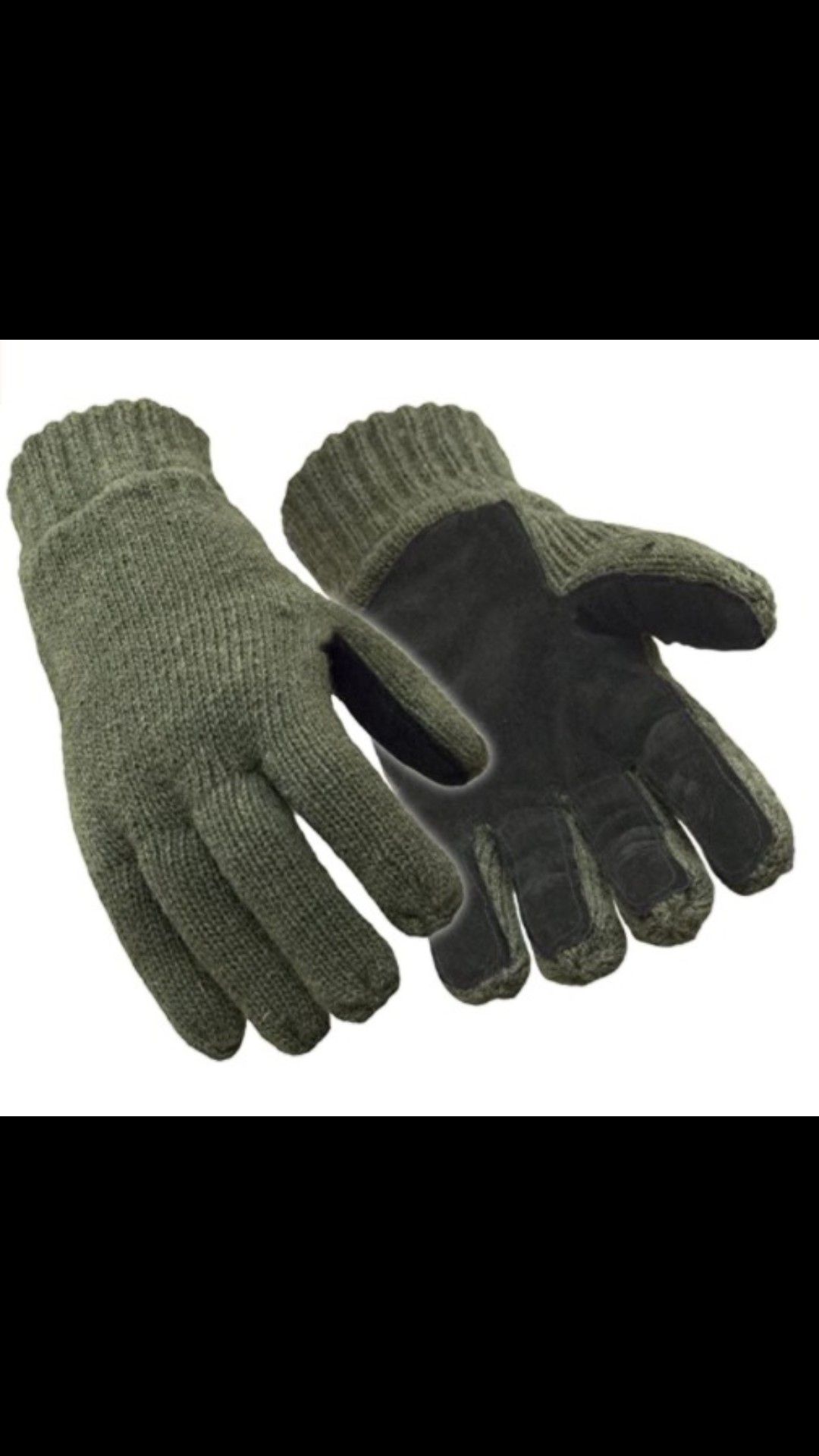 100% Ragg Wool Leather Palm Gloves with 3M Thinsulate lining. Size Large.